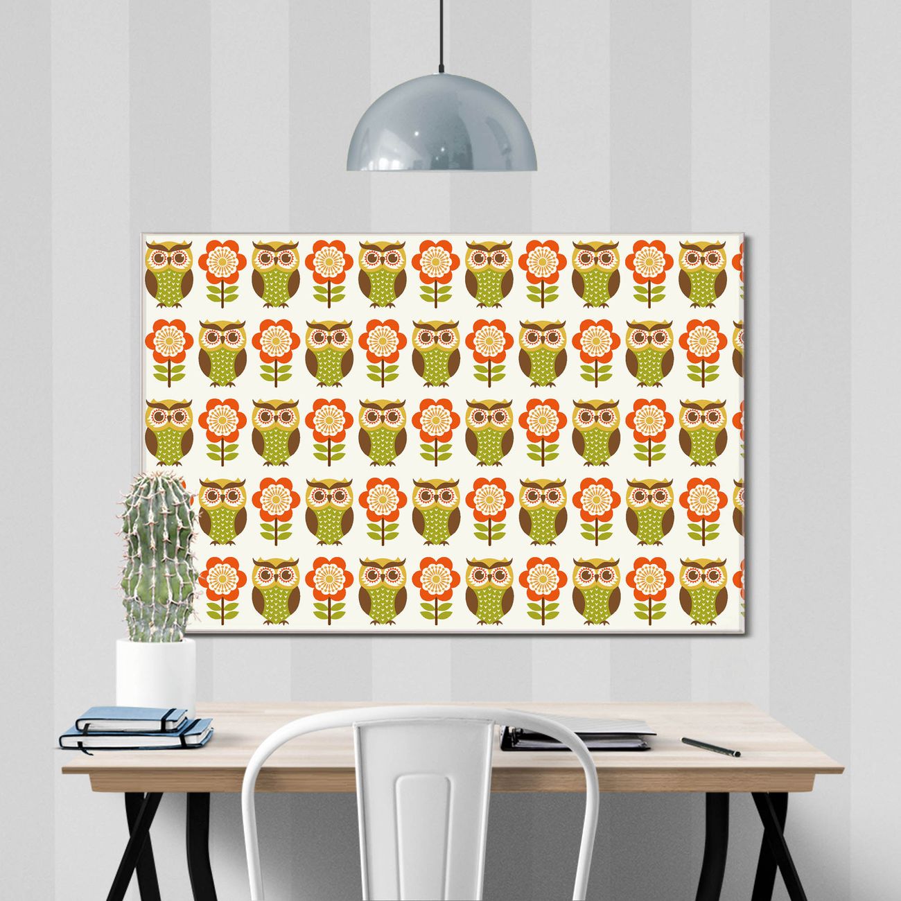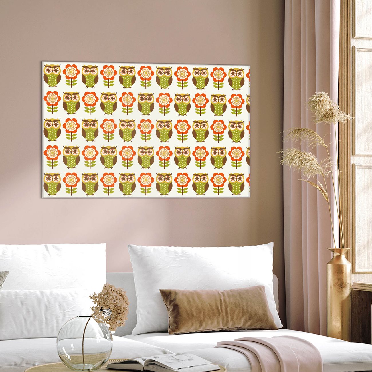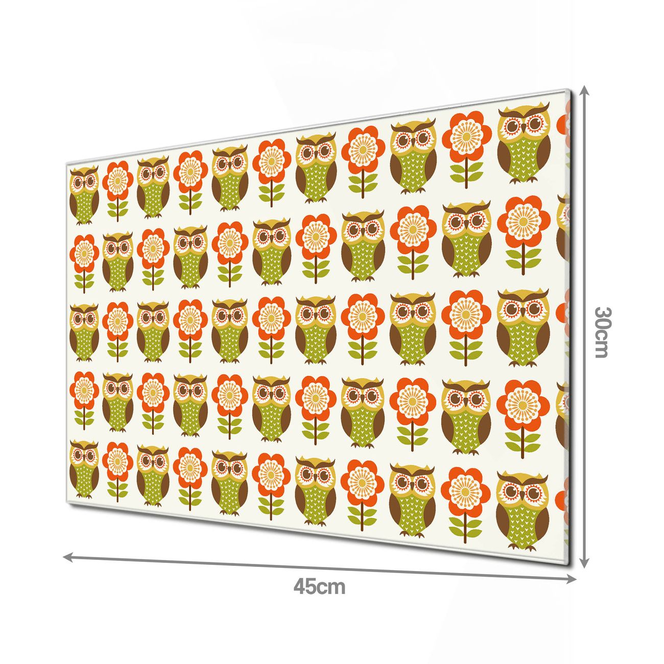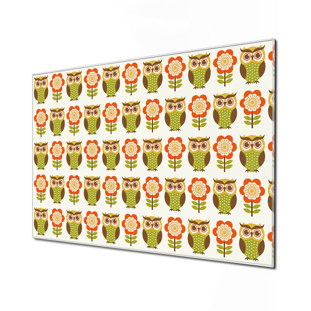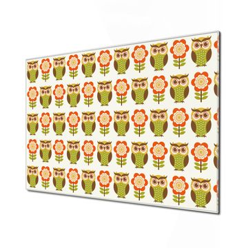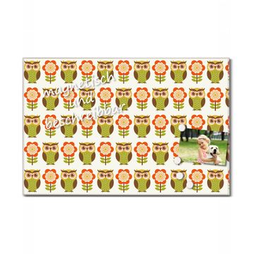 Glas Magnettafel im Querformat Eule und Blume