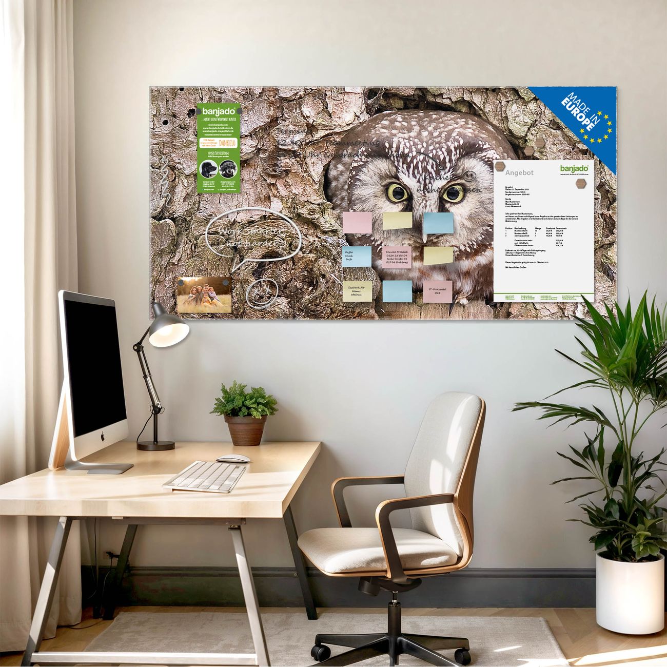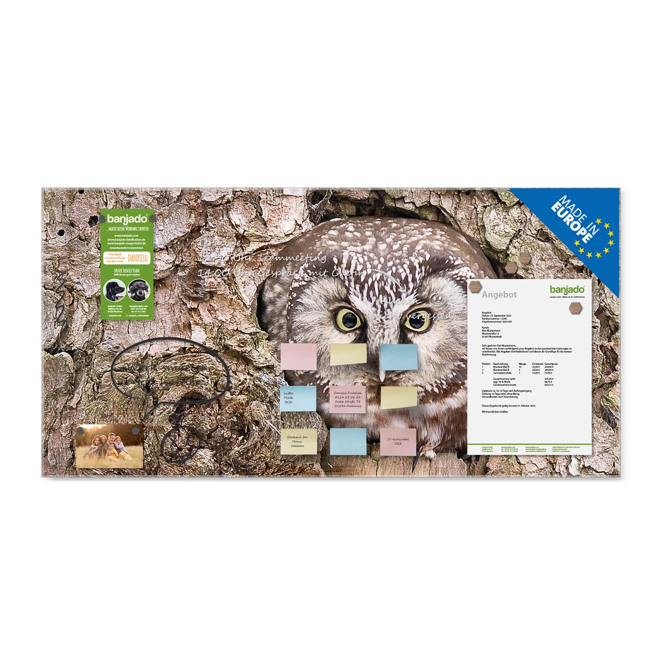 Die banjado Glas Magnettafel mit dem Motiv Motiv Eule verbindet Funktionalität mit Stil. Sie ersetzt das Zettelchaos durch klare Strukturen und bringt dabei eine warme, natürliche Atmosphäre in Ihr Zuhause. Ob im Büro, in der Küche oder im Eingangsbereich - dieses Design-Board zieht Blicke an und sorgt für Ordnung mit Charakter.