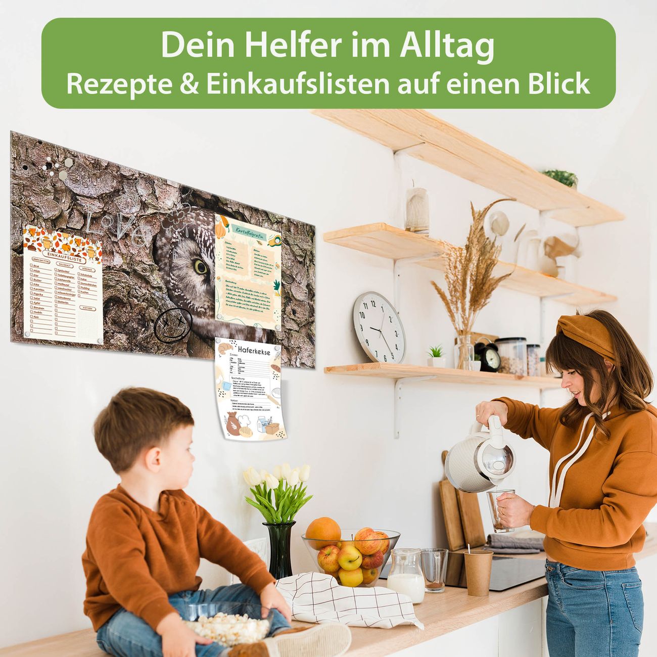 Ein Stück Design, das Ihren Alltag organisiert. Schreiben, heften, inspirieren - alles an einem Ort. Qualität, die man spürt. Montage leicht gemacht. Handwerk mit Herz - veredelt in Sachsen. Einzigartiges Design mit Motiv Motiv Eule Beschreibbare Glasoberfläche, leicht zu reinigen Starke Magnetkraft durch Stahlrückwand Inklusive 4 Neodym-Magneten Flexible Montageoptionen Handveredelt in Sachsen - Qualität, die bleibt