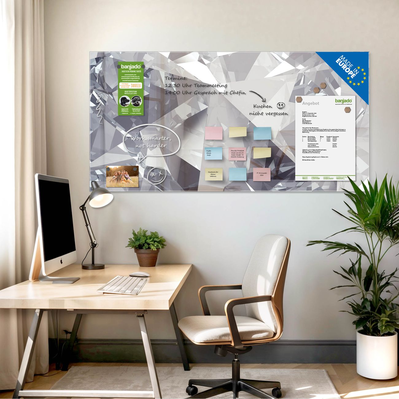 Glas Magnettafel im Querformat Motiv Facetten Monochrome