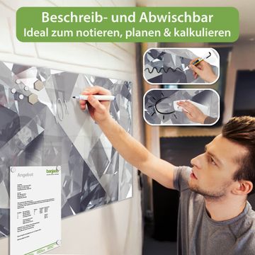 Die banjado Glas Magnettafel mit dem Motiv Motiv Facetten Monochrome verbindet Funktionalität mit Stil. Sie ersetzt das Zettelchaos durch klare Strukturen und bringt dabei eine warme, natürliche Atmosphäre in Ihr Zuhause. Ob im Büro, in der Küche oder im Eingangsbereich - dieses Design-Board zieht Blicke an und sorgt für Ordnung mit Charakter.
