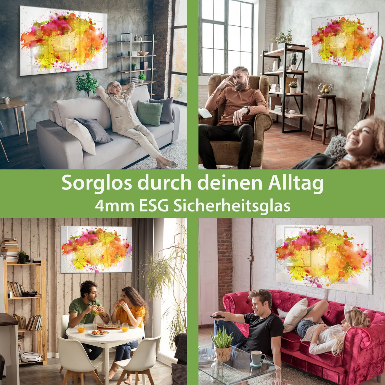 - Material: 4mm Sicherheitsglas mit Metallrückwand