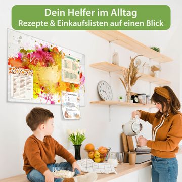 Ein Stück Design, das Ihren Alltag organisiert. Schreiben, heften, inspirieren - alles an einem Ort. Qualität, die man spürt. Montage leicht gemacht. Handwerk mit Herz - veredelt in Sachsen. Einzigartiges Design mit Motiv Motiv Farbkleckse Beschreibbare Glasoberfläche, leicht zu reinigen Starke Magnetkraft durch Stahlrückwand Inklusive 4 Neodym-Magneten Flexible Montageoptionen Handveredelt in Sachsen - Qualität, die bleibt