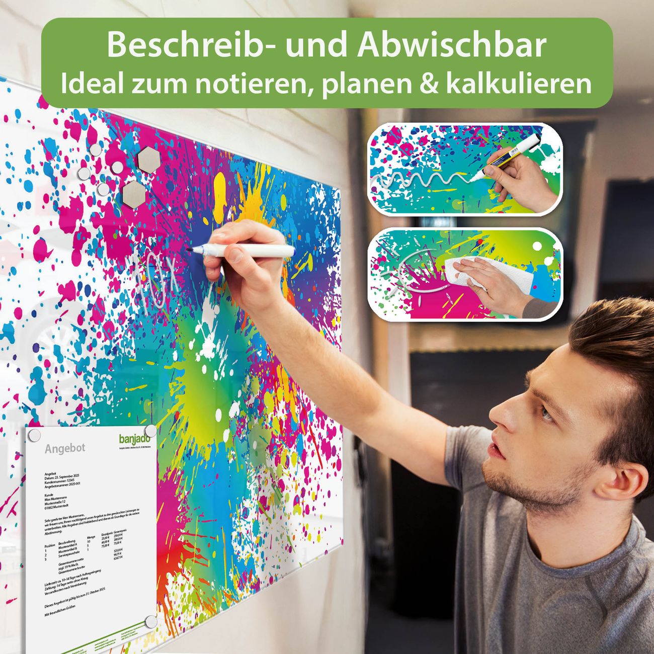 Glas Magnettafel im Querformat Motiv Farbspritzer