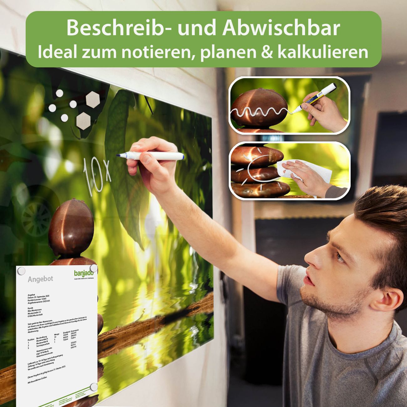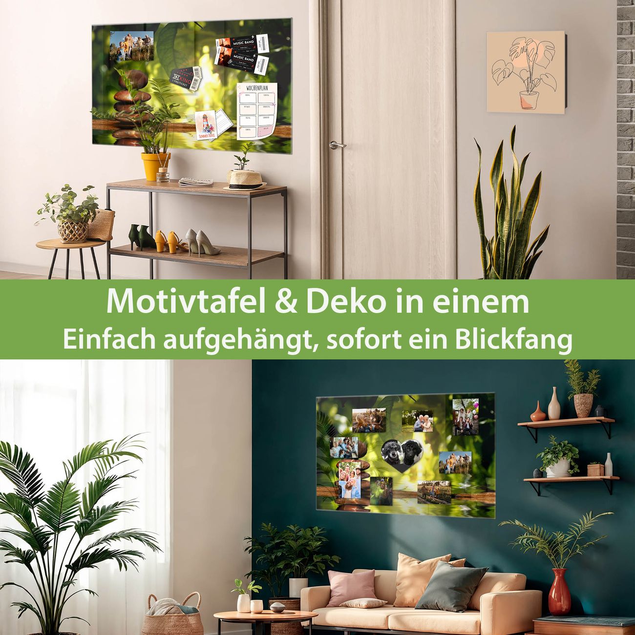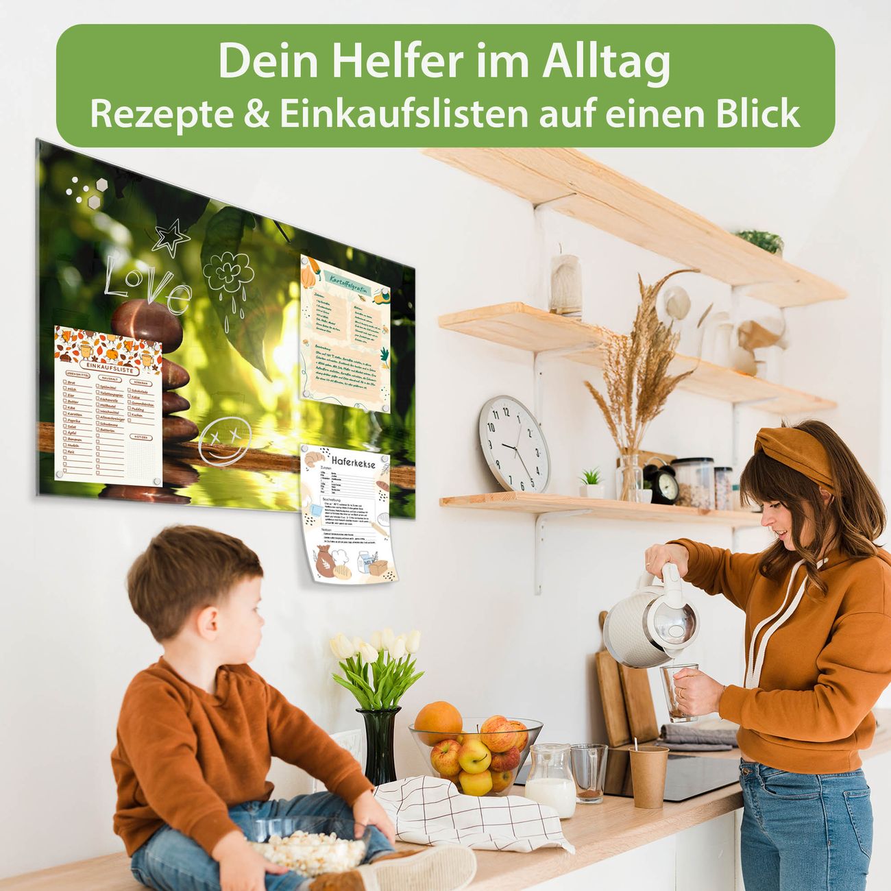 Die banjado Glas Magnettafel mit dem Motiv Motiv Feng Shui verbindet Funktionalität mit Stil. Sie ersetzt das Zettelchaos durch klare Strukturen und bringt dabei eine warme, natürliche Atmosphäre in Ihr Zuhause. Ob im Büro, in der Küche oder im Eingangsbereich - dieses Design-Board zieht Blicke an und sorgt für Ordnung mit Charakter.