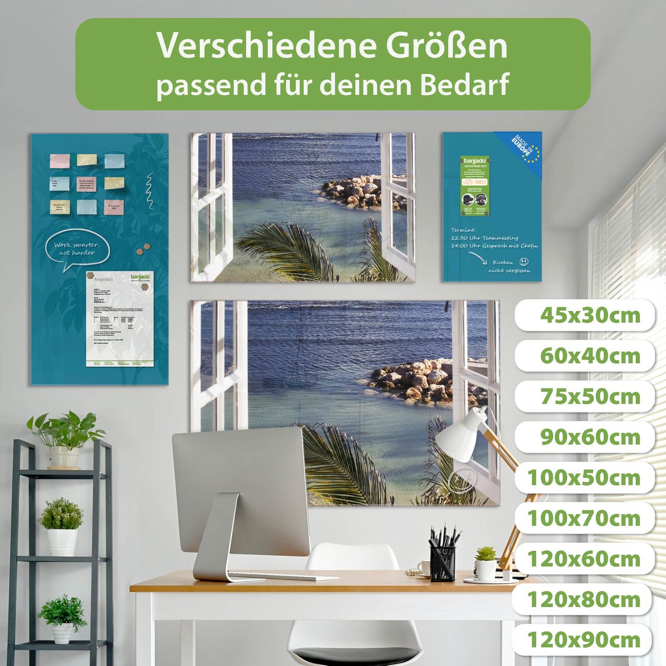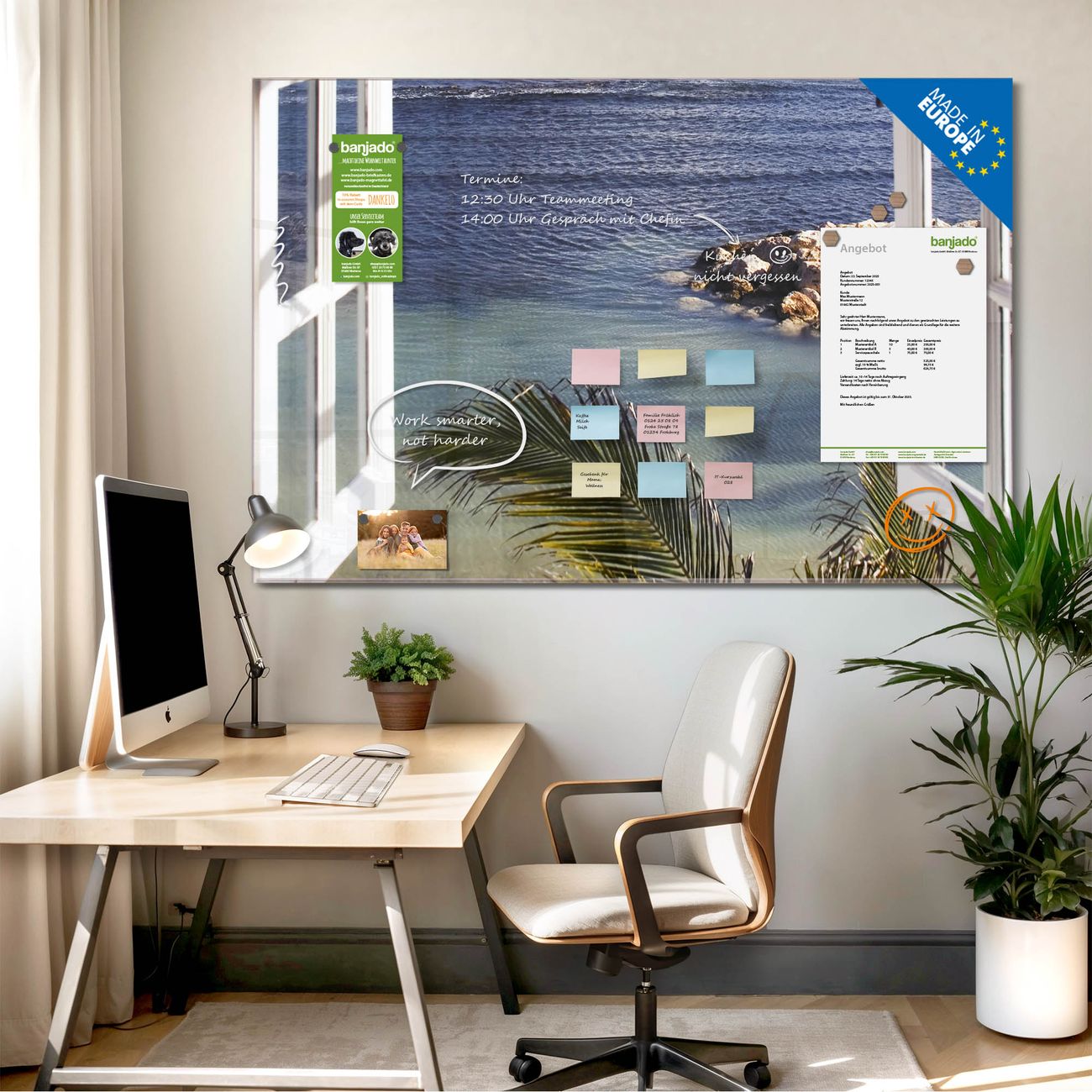 Die banjado Glas Magnettafel mit dem Motiv Motiv Fensterpanorama verbindet Funktionalität mit Stil. Sie ersetzt das Zettelchaos durch klare Strukturen und bringt dabei eine warme, natürliche Atmosphäre in Ihr Zuhause. Ob im Büro, in der Küche oder im Eingangsbereich - dieses Design-Board zieht Blicke an und sorgt für Ordnung mit Charakter.