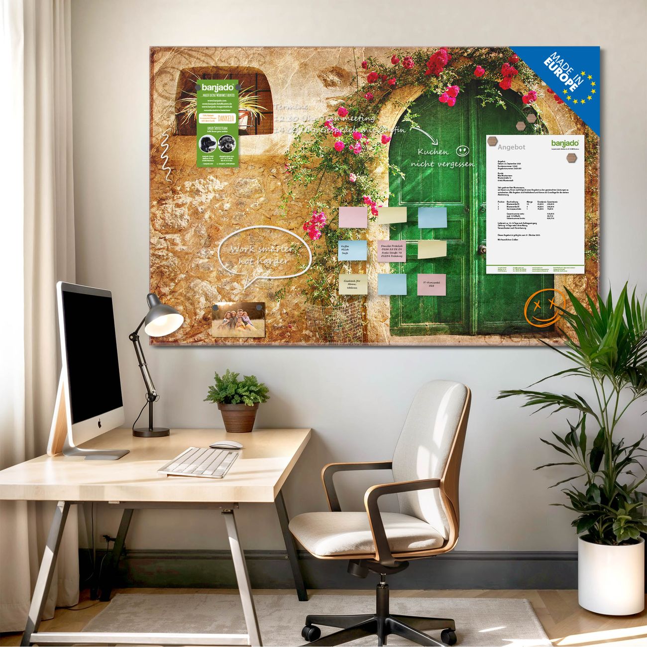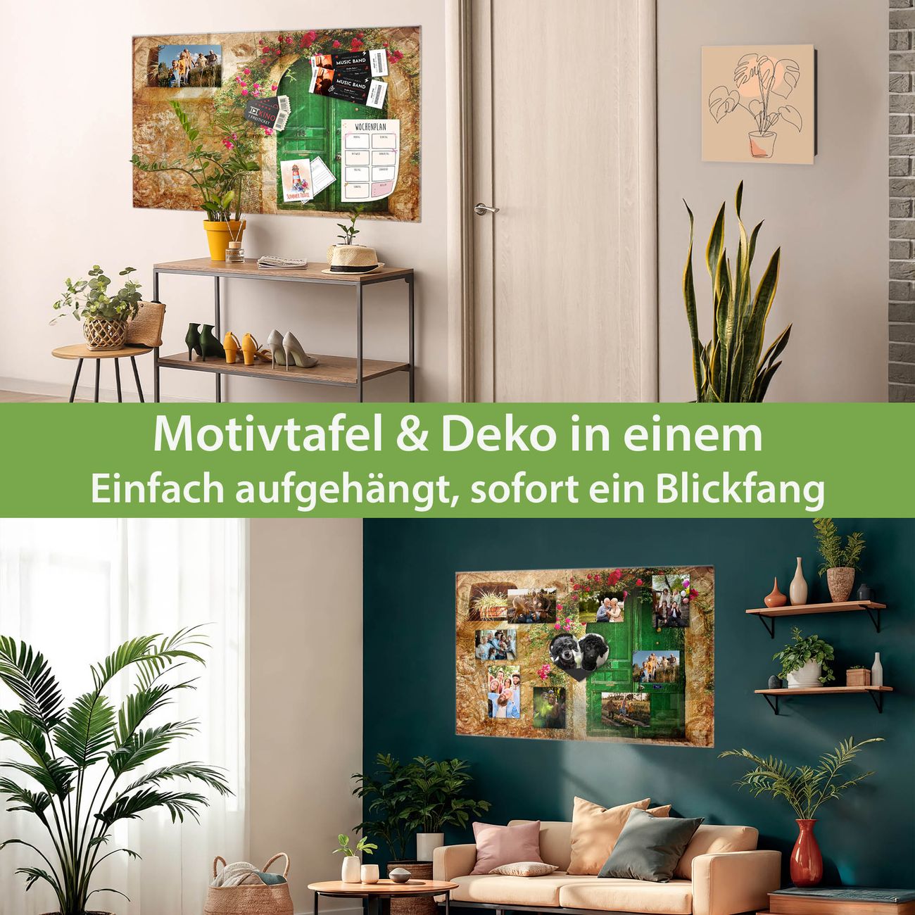 Die banjado Glas Magnettafel mit dem Motiv Motiv Ferienhaus verbindet Funktionalität mit Stil. Sie ersetzt das Zettelchaos durch klare Strukturen und bringt dabei eine warme, natürliche Atmosphäre in Ihr Zuhause. Ob im Büro, in der Küche oder im Eingangsbereich - dieses Design-Board zieht Blicke an und sorgt für Ordnung mit Charakter.