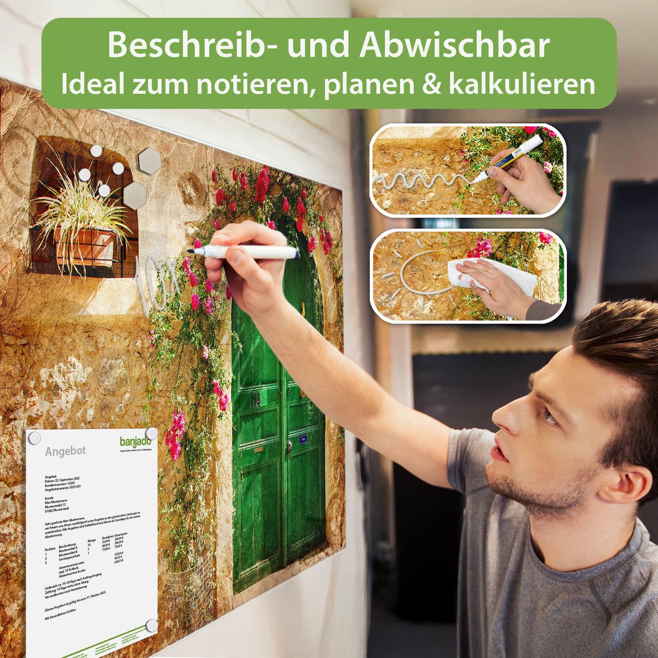 Jede Glas Magnettafel wird in unserer Werkstatt von Hand gefertigt und sorgfältig geprüft. So erhalten Sie ein echtes Qualitätsprodukt, das Funktion und Ästhetik perfekt vereint.?? Warum banjado?