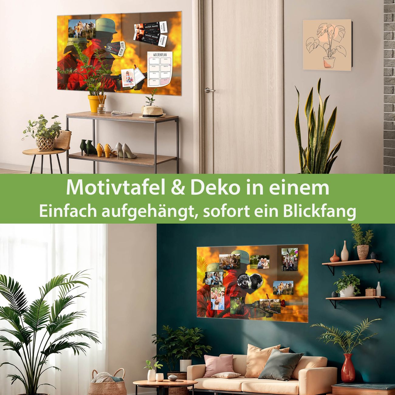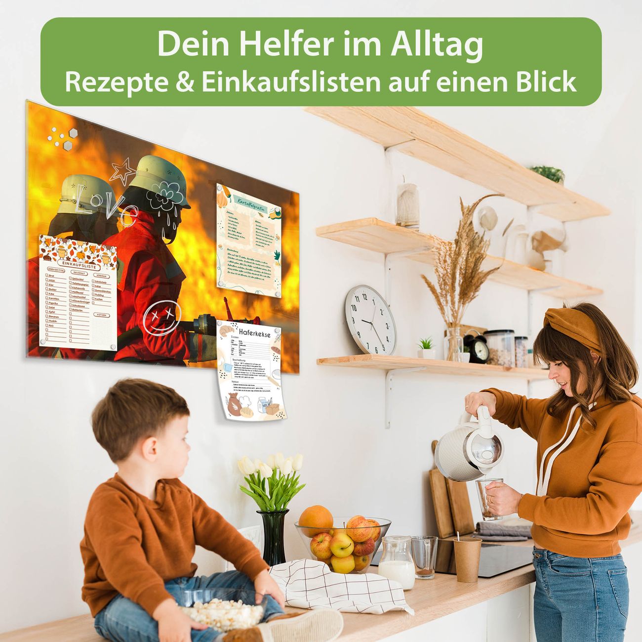 Ein Stück Design, das Ihren Alltag organisiert. Schreiben, heften, inspirieren - alles an einem Ort. Qualität, die man spürt. Montage leicht gemacht. Handwerk mit Herz - veredelt in Sachsen. Einzigartiges Design mit Motiv Motiv Feuer Beschreibbare Glasoberfläche, leicht zu reinigen Starke Magnetkraft durch Stahlrückwand Inklusive 4 Neodym-Magneten Flexible Montageoptionen Handveredelt in Sachsen - Qualität, die bleibt