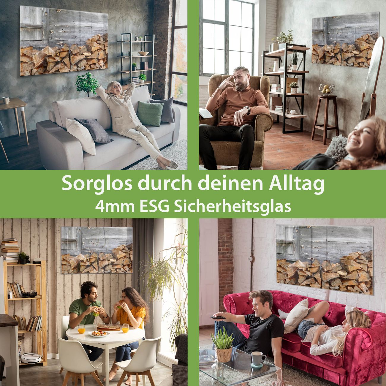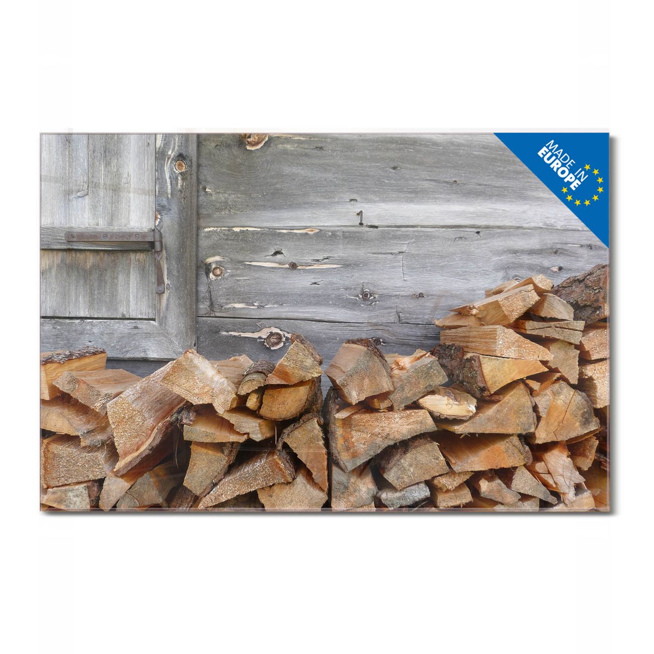 Glas Magnettafel im Querformat Motiv Feuerholz