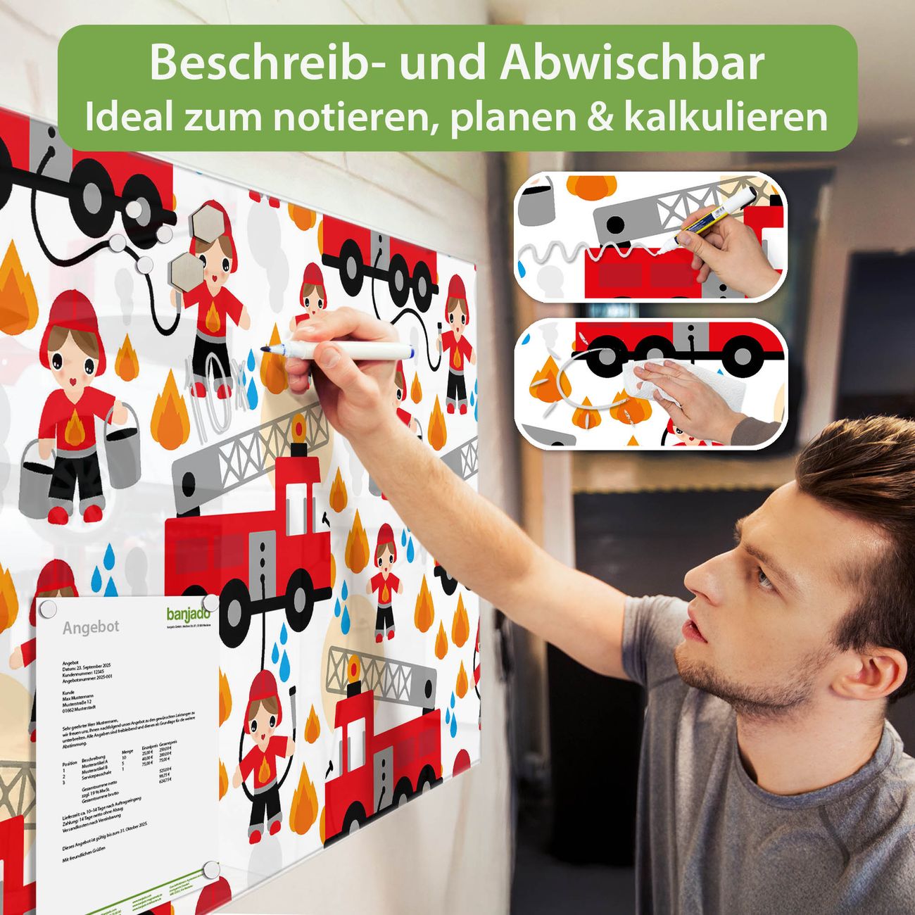 Glas Magnettafel im Querformat Motiv Feuerwehr