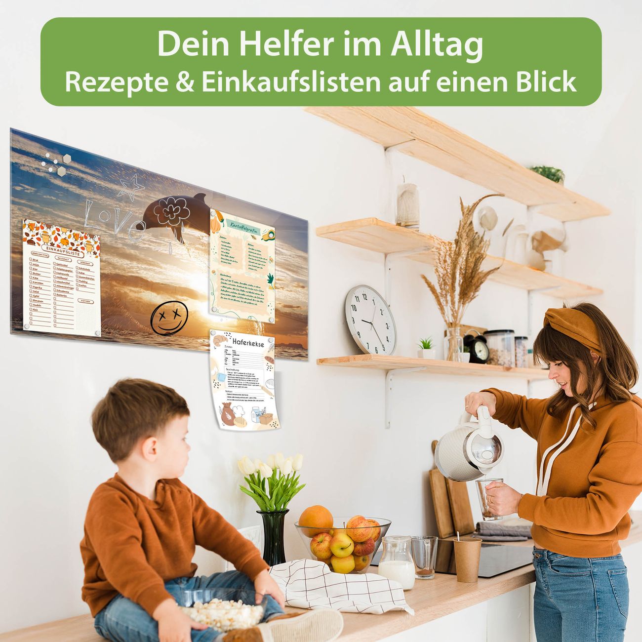 Auf der glatten Glasoberfläche lassen sich Termine, Rezepte oder Notizen ganz einfach mit Kreidestiften festhalten und rückstandslos entfernen. Starke Neodym-Magnete halten Ihre wichtigsten Erinnerungen sicher an Ort und Stelle. So entsteht Ihre ganz persönliche Ideenwand - jeden Tag neu.