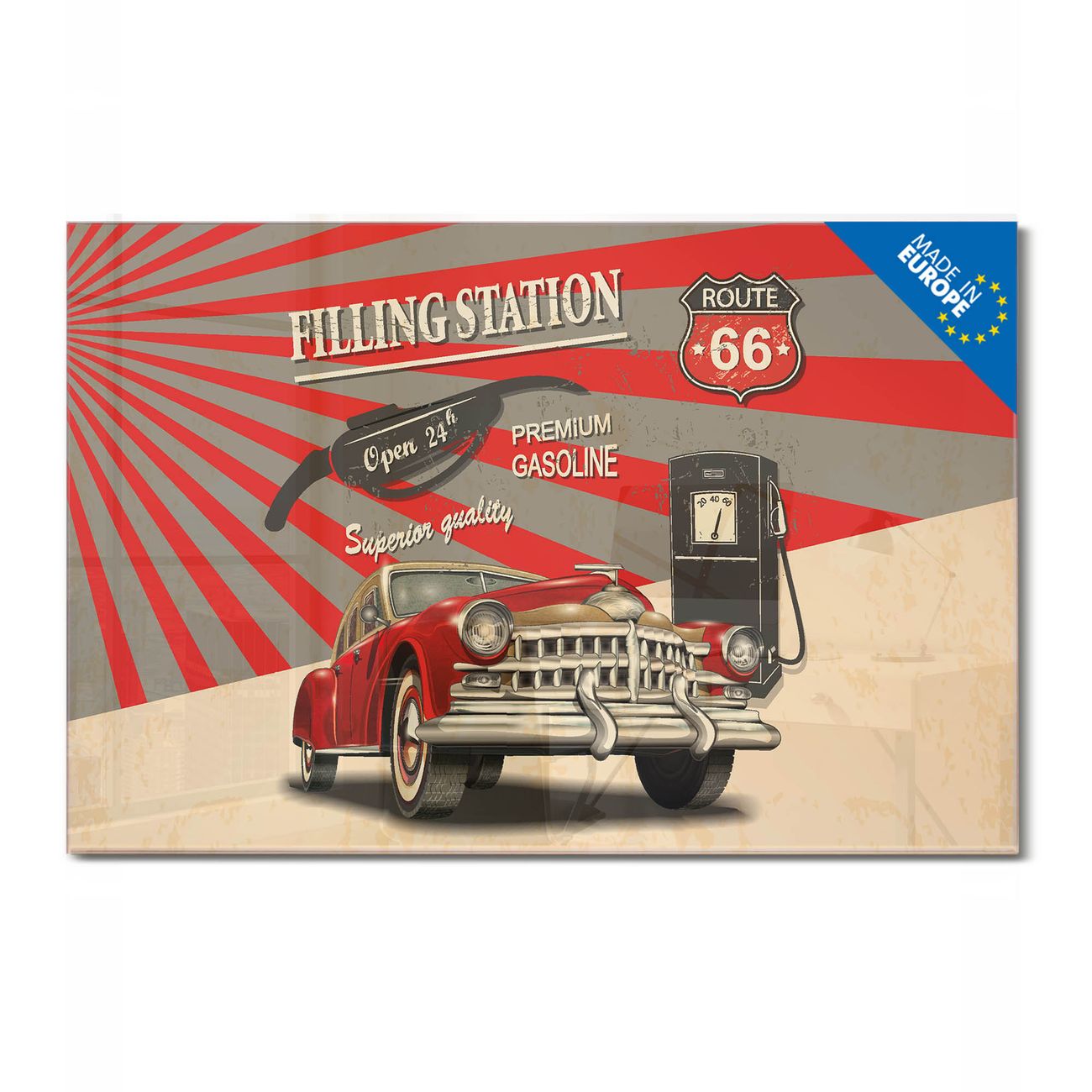 Glas Magnettafel im Querformat Motiv Filling Station