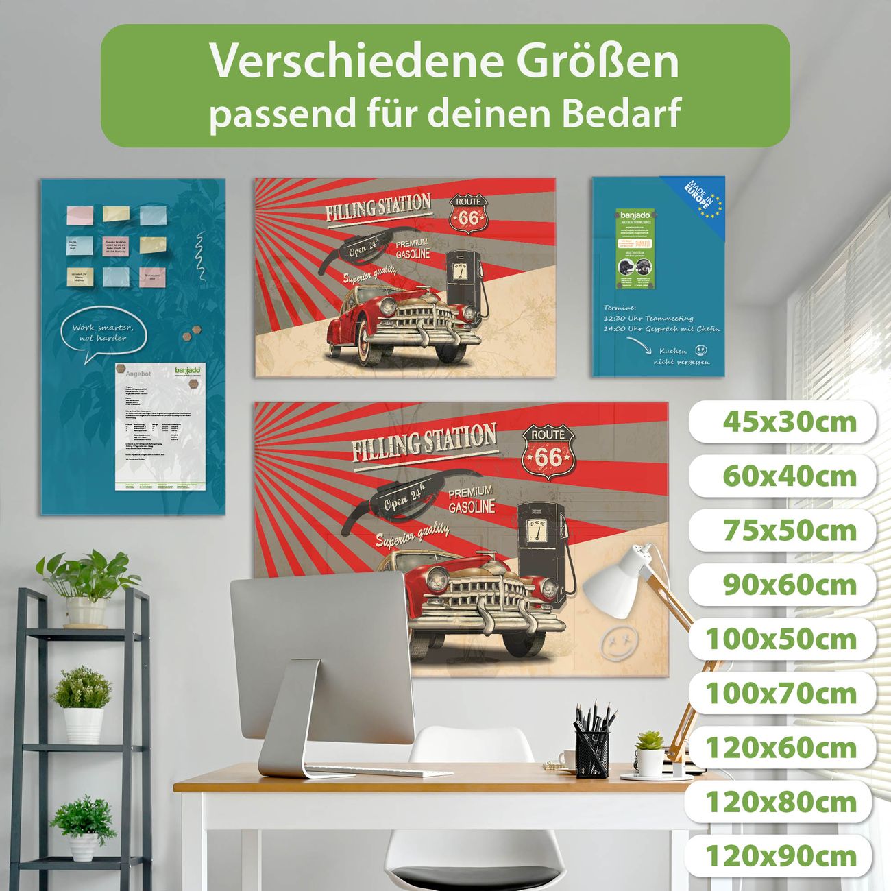 Die banjado Glas Magnettafel mit dem Motiv Motiv Filling Station verbindet Funktionalität mit Stil. Sie ersetzt das Zettelchaos durch klare Strukturen und bringt dabei eine warme, natürliche Atmosphäre in Ihr Zuhause. Ob im Büro, in der Küche oder im Eingangsbereich - dieses Design-Board zieht Blicke an und sorgt für Ordnung mit Charakter.