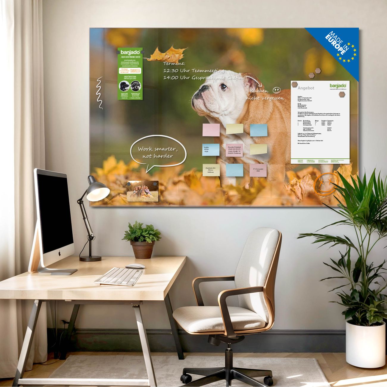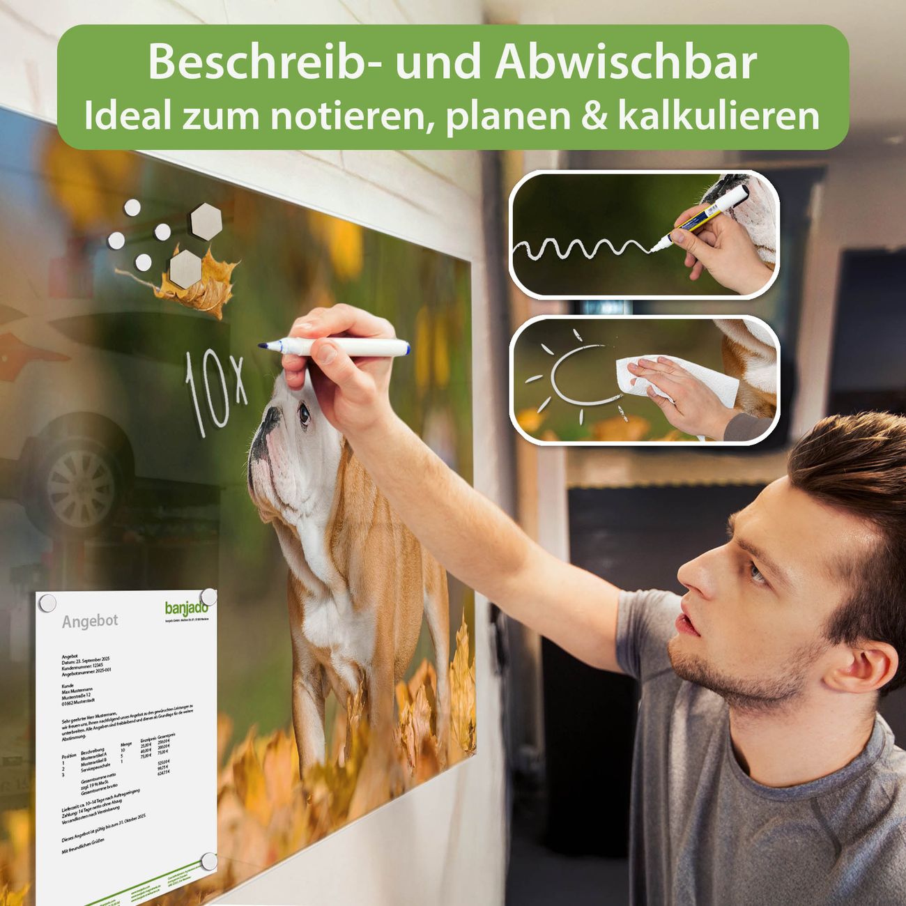 Jede Glas Magnettafel wird in unserer Werkstatt von Hand gefertigt und sorgfältig geprüft. So erhalten Sie ein echtes Qualitätsprodukt, das Funktion und Ästhetik perfekt vereint.?? Warum banjado?