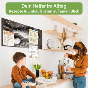 Auf der glatten Glasoberfläche lassen sich Termine, Rezepte oder Notizen ganz einfach mit Kreidestiften festhalten und rückstandslos entfernen. Starke Neodym-Magnete halten Ihre wichtigsten Erinnerungen sicher an Ort und Stelle. So entsteht Ihre ganz persönliche Ideenwand - jeden Tag neu.