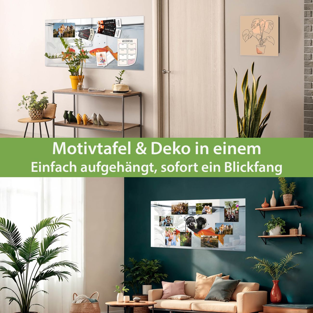 Die banjado Glas Magnettafel mit dem Motiv Motiv Fische verbindet Funktionalität mit Stil. Sie ersetzt das Zettelchaos durch klare Strukturen und bringt dabei eine warme, natürliche Atmosphäre in Ihr Zuhause. Ob im Büro, in der Küche oder im Eingangsbereich - dieses Design-Board zieht Blicke an und sorgt für Ordnung mit Charakter.