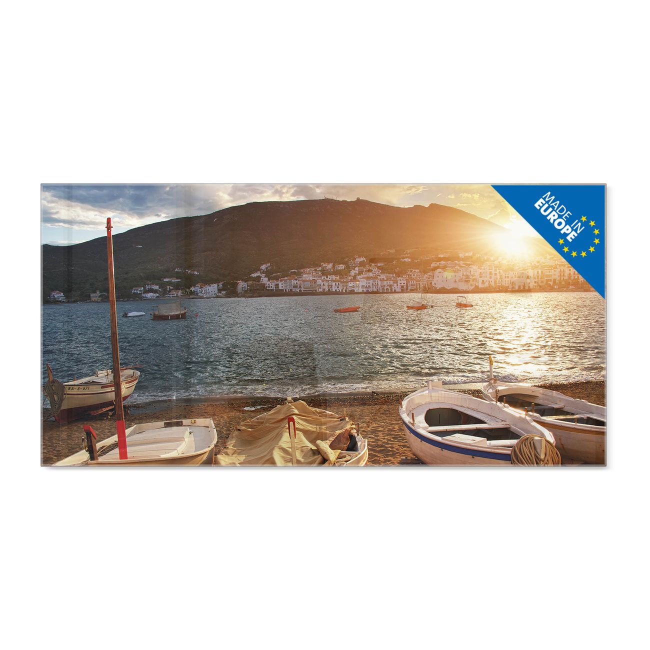 Glas Magnettafel im Querformat Motiv Fischerboote