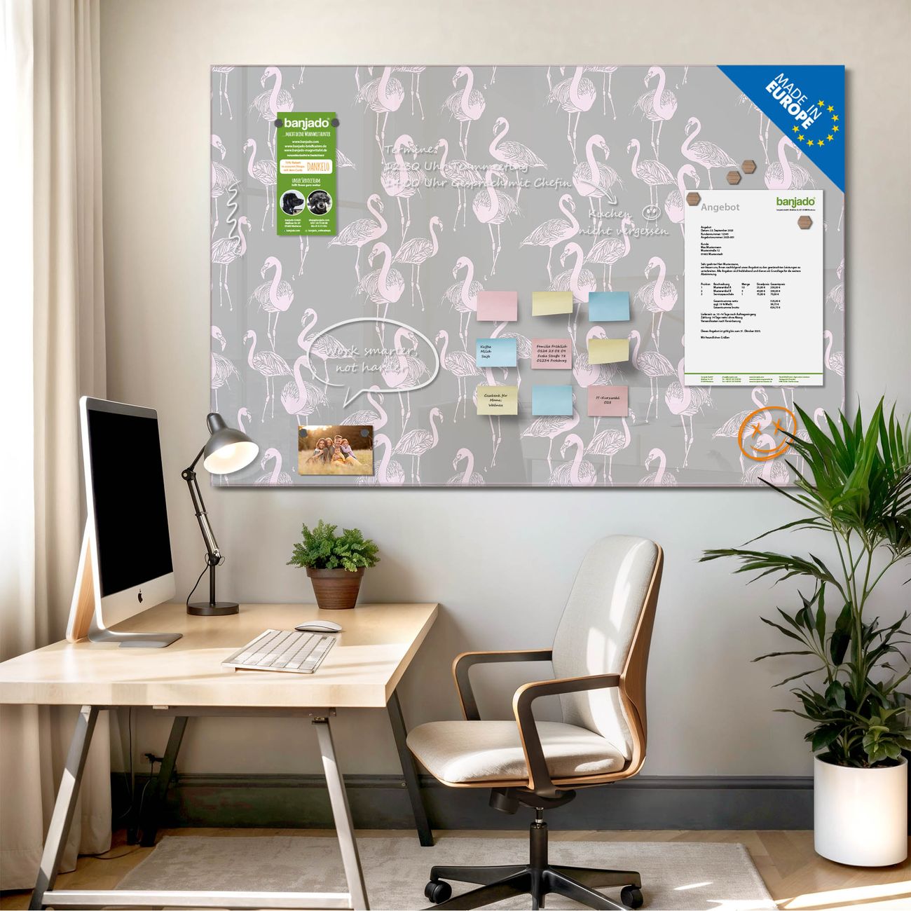 Glas Magnettafel im Querformat Motiv Flamingos Blass