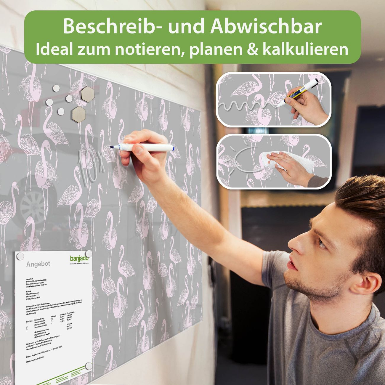 Die banjado Glas Magnettafel mit dem Motiv Motiv Flamingos Blass verbindet Funktionalität mit Stil. Sie ersetzt das Zettelchaos durch klare Strukturen und bringt dabei eine warme, natürliche Atmosphäre in Ihr Zuhause. Ob im Büro, in der Küche oder im Eingangsbereich - dieses Design-Board zieht Blicke an und sorgt für Ordnung mit Charakter.