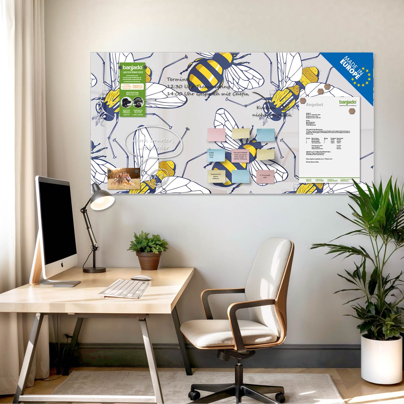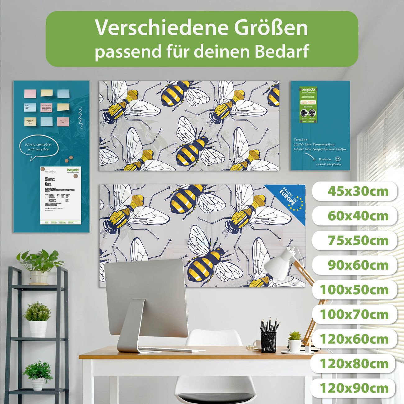 Jede Glas Magnettafel wird in unserer Werkstatt von Hand gefertigt und sorgfältig geprüft. So erhalten Sie ein echtes Qualitätsprodukt, das Funktion und Ästhetik perfekt vereint.?? Warum banjado?