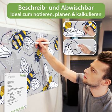 Glas Magnettafel im Querformat Motiv Fliegen und Bienen