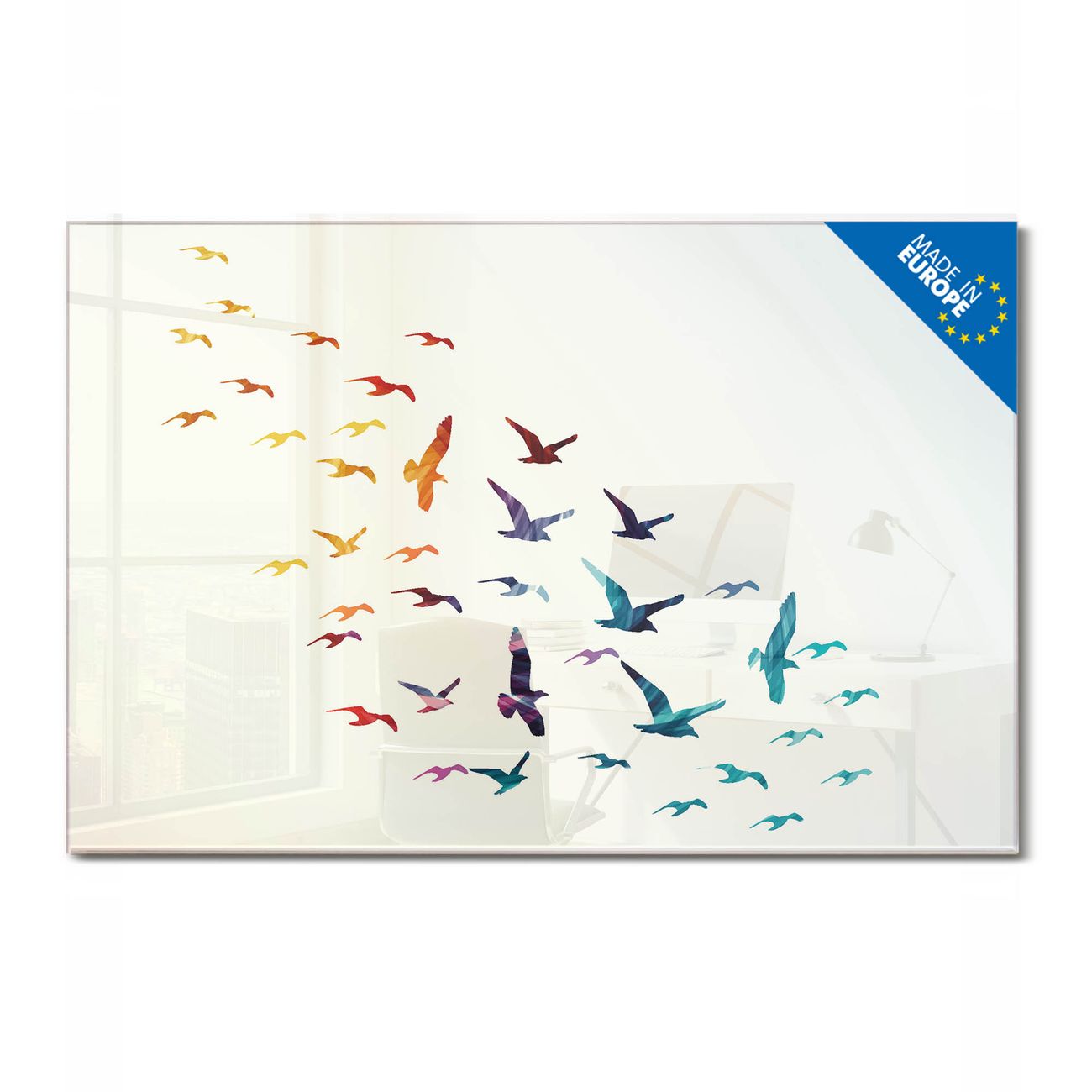 Glas Magnettafel im Querformat Motiv Fliegende Vögel