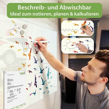 Die banjado Glas Magnettafel mit dem Motiv Motiv Fliegende Vögel verbindet Funktionalität mit Stil. Sie ersetzt das Zettelchaos durch klare Strukturen und bringt dabei eine warme, natürliche Atmosphäre in Ihr Zuhause. Ob im Büro, in der Küche oder im Eingangsbereich - dieses Design-Board zieht Blicke an und sorgt für Ordnung mit Charakter.