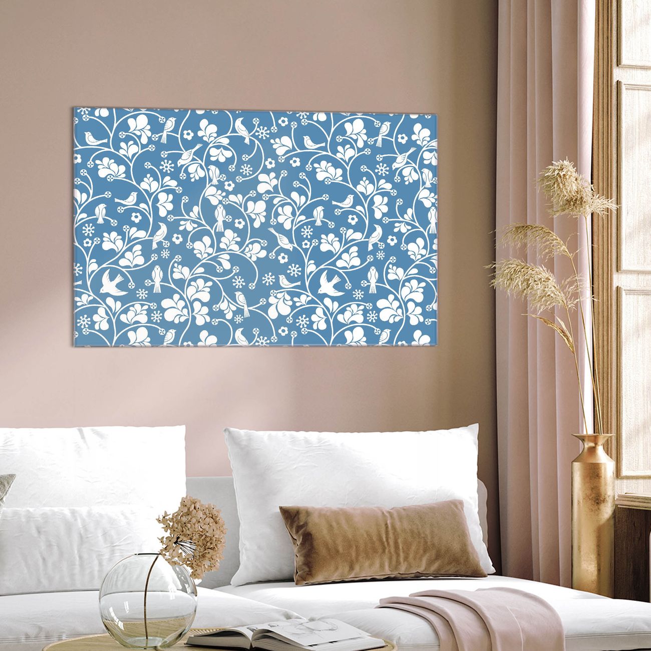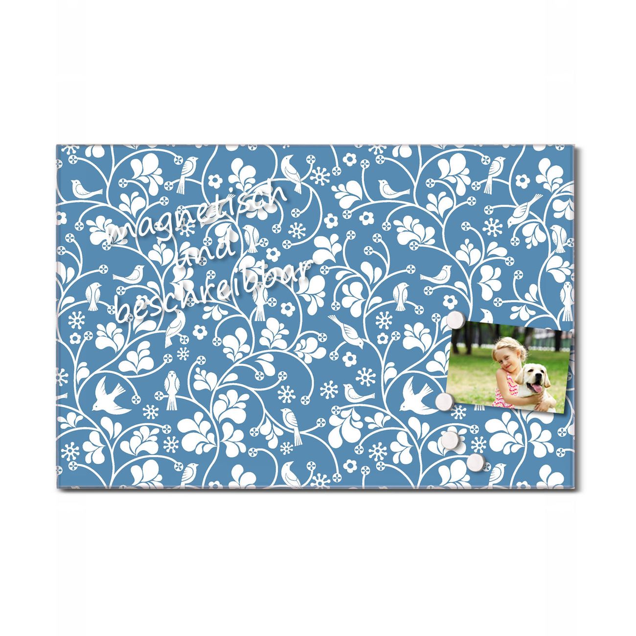 Glas Magnettafel im Querformat Floral Hellblau