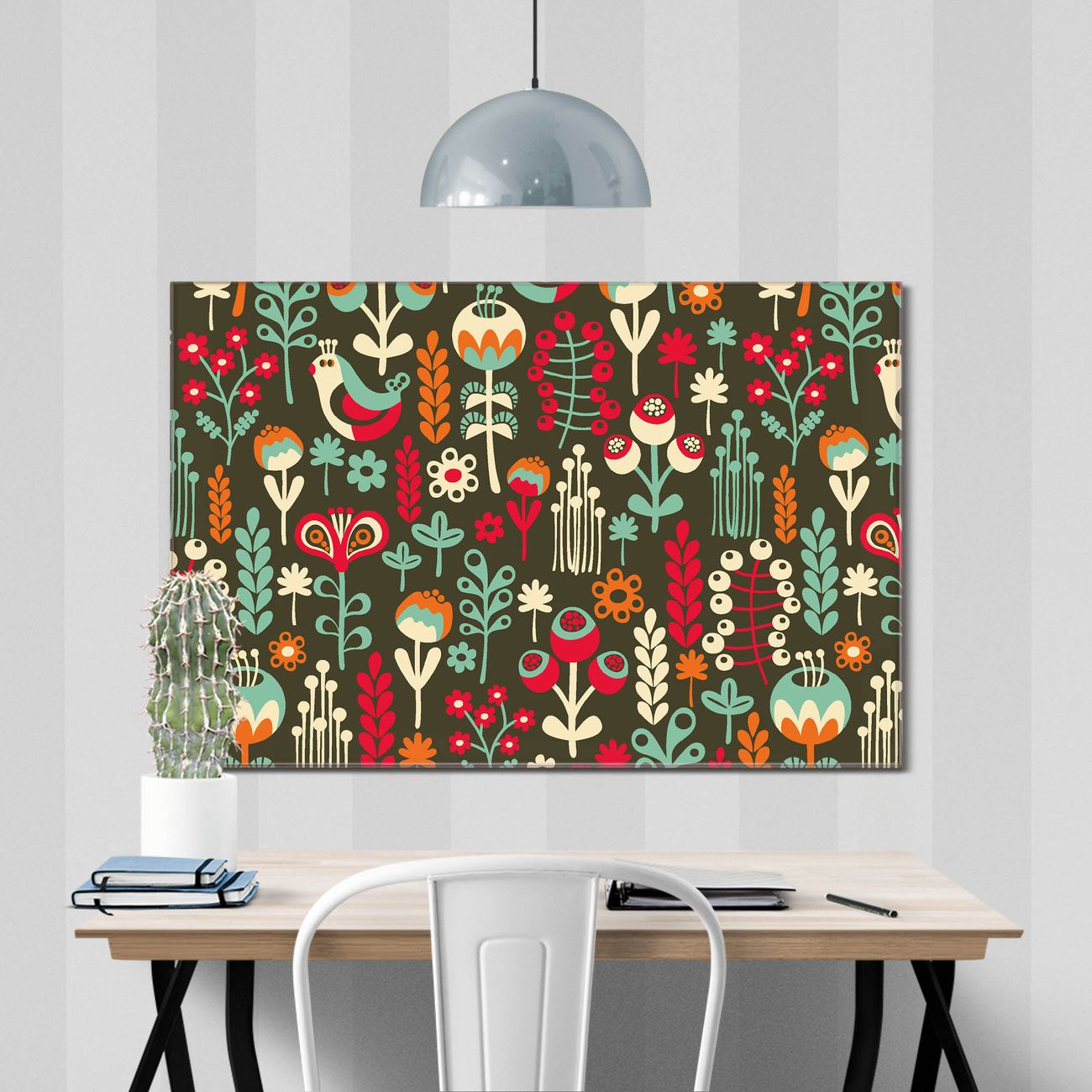 Glas Magnettafel im Querformat Floral Retro