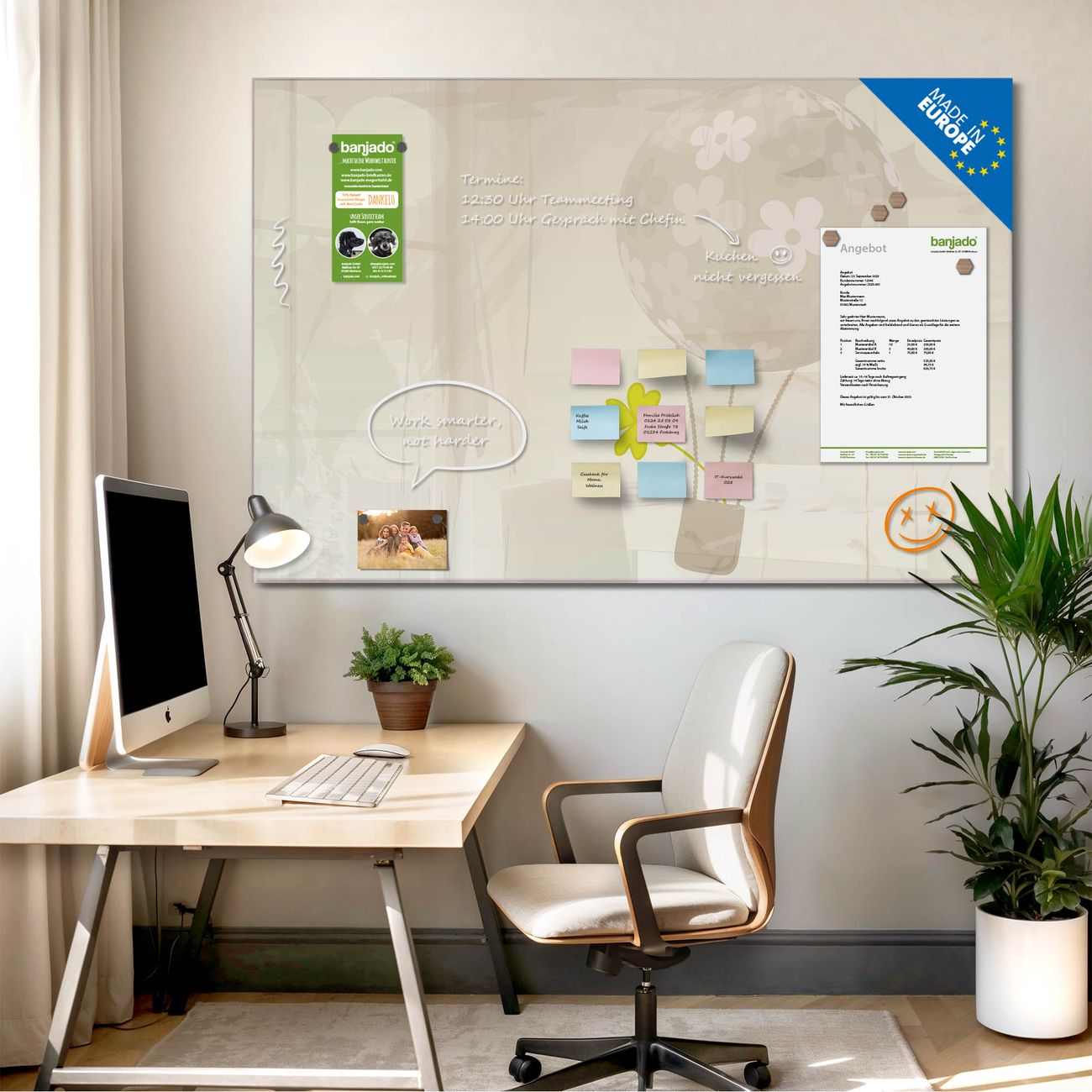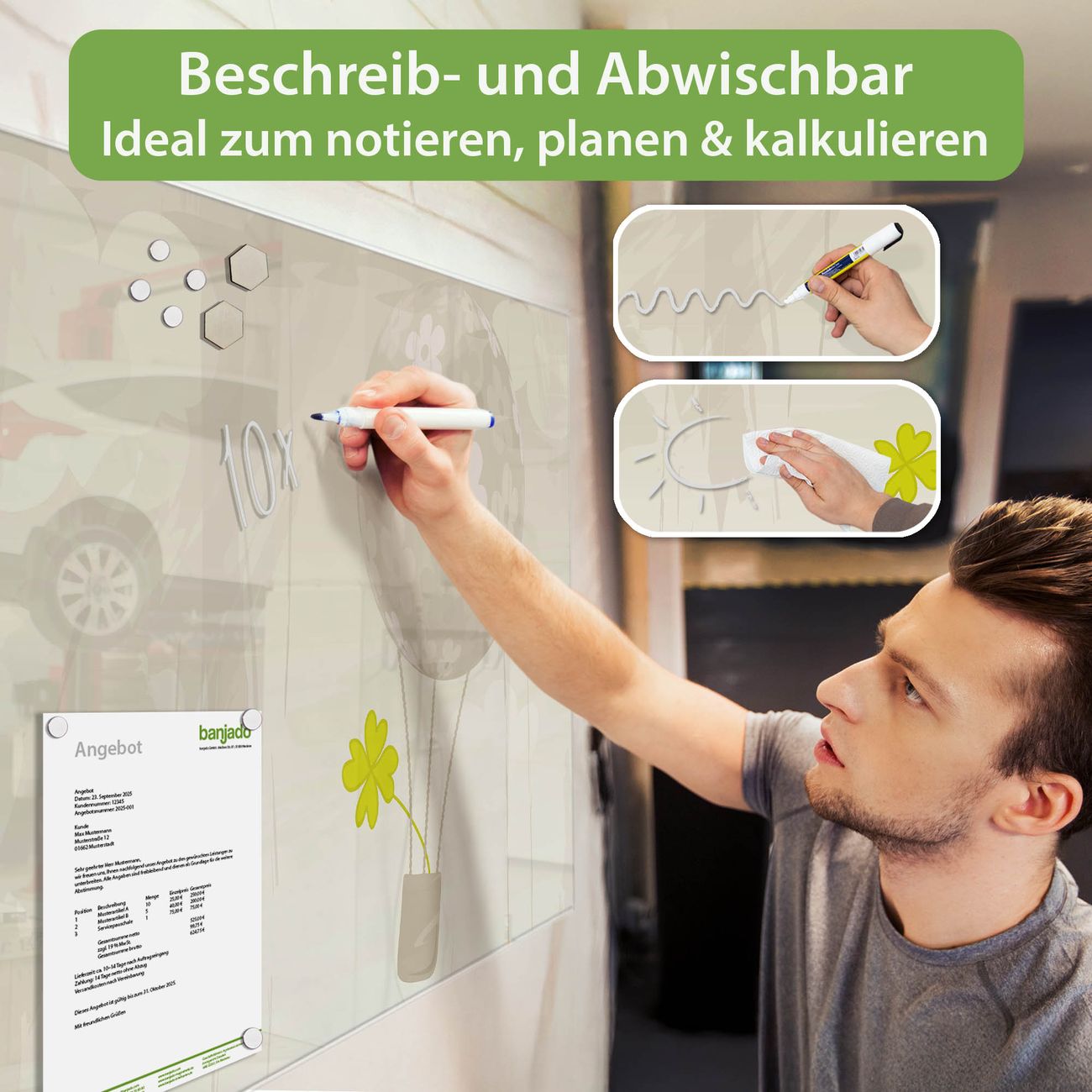 Jede Glas Magnettafel wird in unserer Werkstatt von Hand gefertigt und sorgfältig geprüft. So erhalten Sie ein echtes Qualitätsprodukt, das Funktion und Ästhetik perfekt vereint.?? Warum banjado?