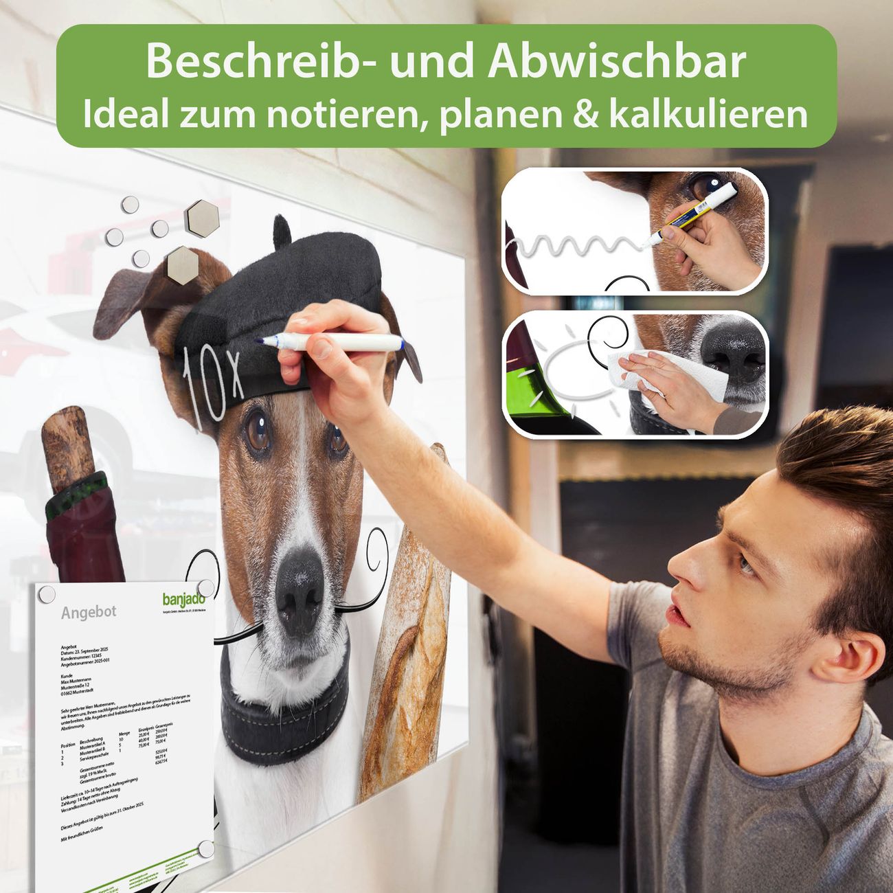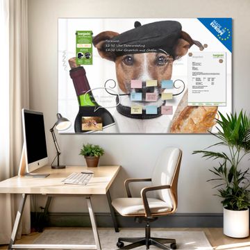 Ein Stück Design, das Ihren Alltag organisiert. Schreiben, heften, inspirieren - alles an einem Ort. Qualität, die man spürt. Montage leicht gemacht. Handwerk mit Herz - veredelt in Sachsen. Einzigartiges Design mit Motiv Motiv Franzose Jack Russel Beschreibbare Glasoberfläche, leicht zu reinigen Starke Magnetkraft durch Stahlrückwand Inklusive 4 Neodym-Magneten Flexible Montageoptionen Handveredelt in Sachsen - Qualität, die bleibt