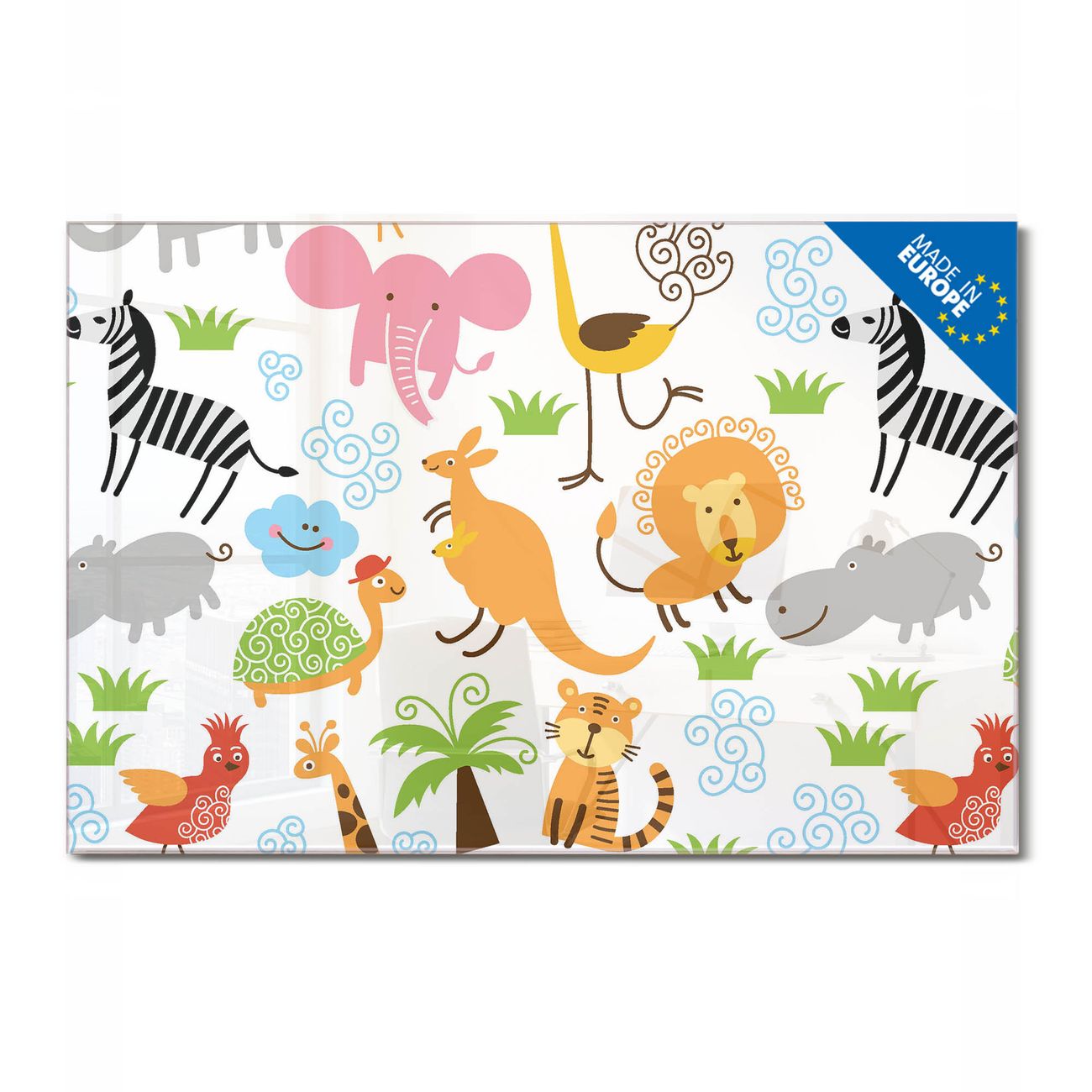 Glas Magnettafel im Querformat Motiv Fröhliche Tiere