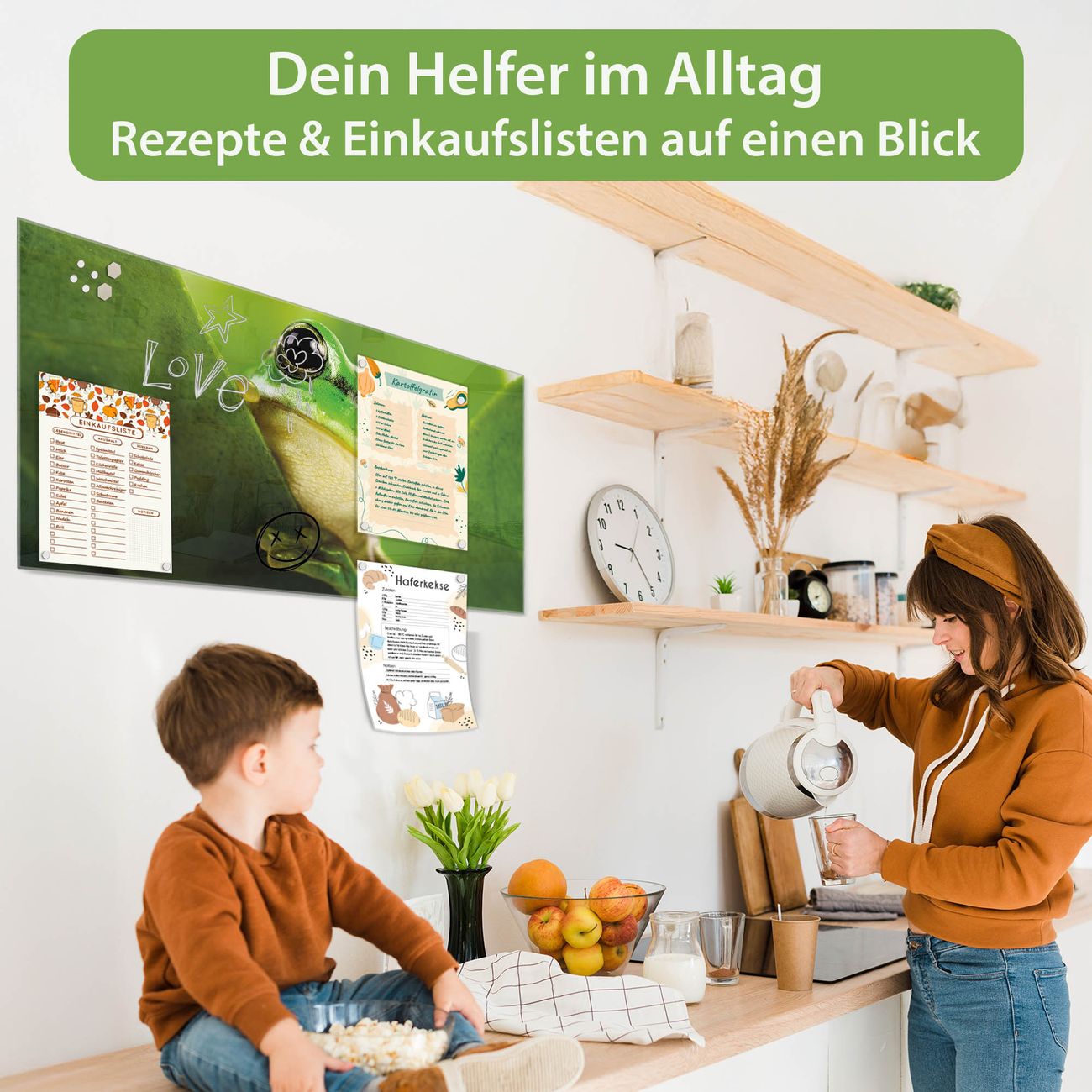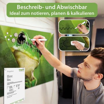 Die banjado Glas Magnettafel mit dem Motiv Motiv Frosch verbindet Funktionalität mit Stil. Sie ersetzt das Zettelchaos durch klare Strukturen und bringt dabei eine warme, natürliche Atmosphäre in Ihr Zuhause. Ob im Büro, in der Küche oder im Eingangsbereich - dieses Design-Board zieht Blicke an und sorgt für Ordnung mit Charakter.