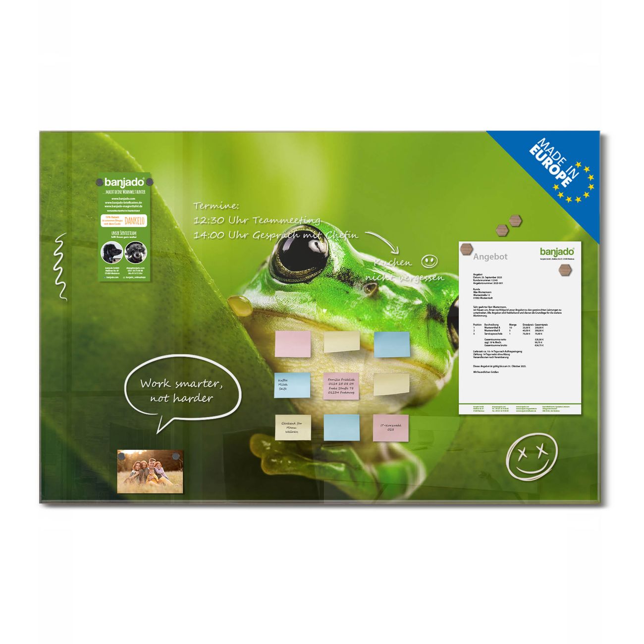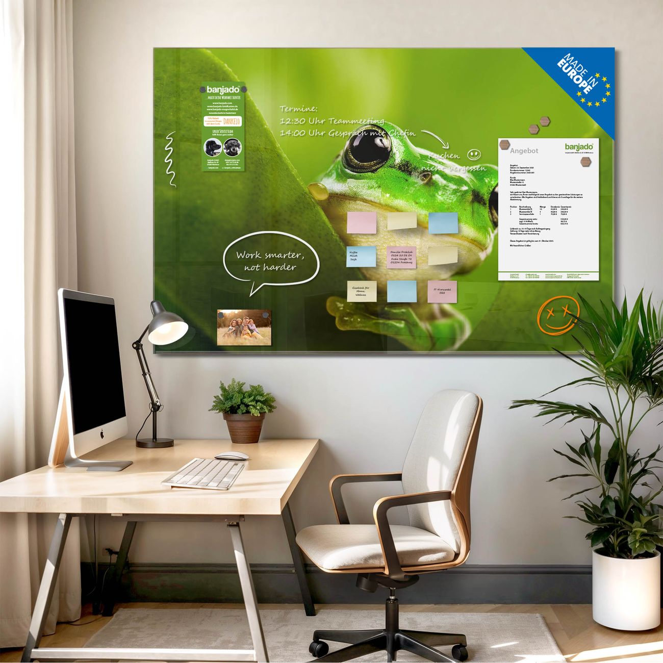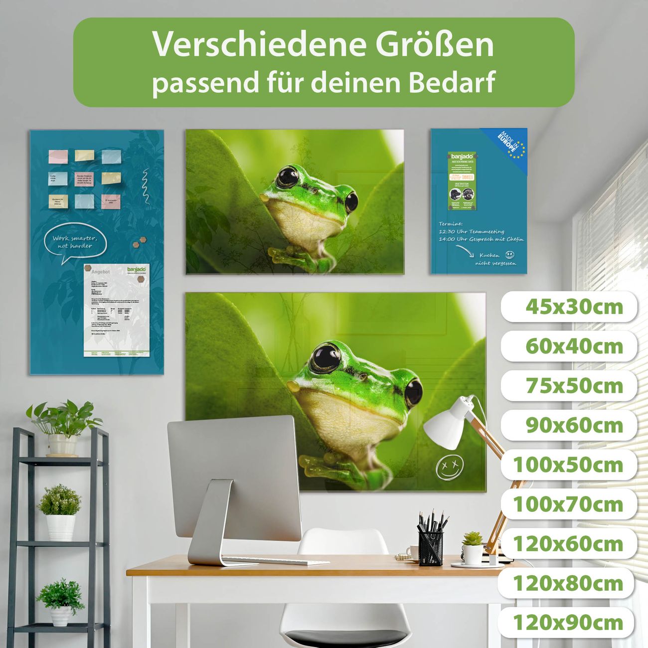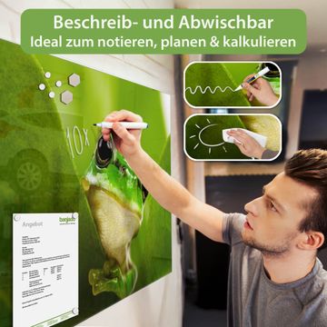 Die banjado Glas Magnettafel mit dem Motiv Motiv Frosch verbindet Funktionalität mit Stil. Sie ersetzt das Zettelchaos durch klare Strukturen und bringt dabei eine warme, natürliche Atmosphäre in Ihr Zuhause. Ob im Büro, in der Küche oder im Eingangsbereich - dieses Design-Board zieht Blicke an und sorgt für Ordnung mit Charakter.