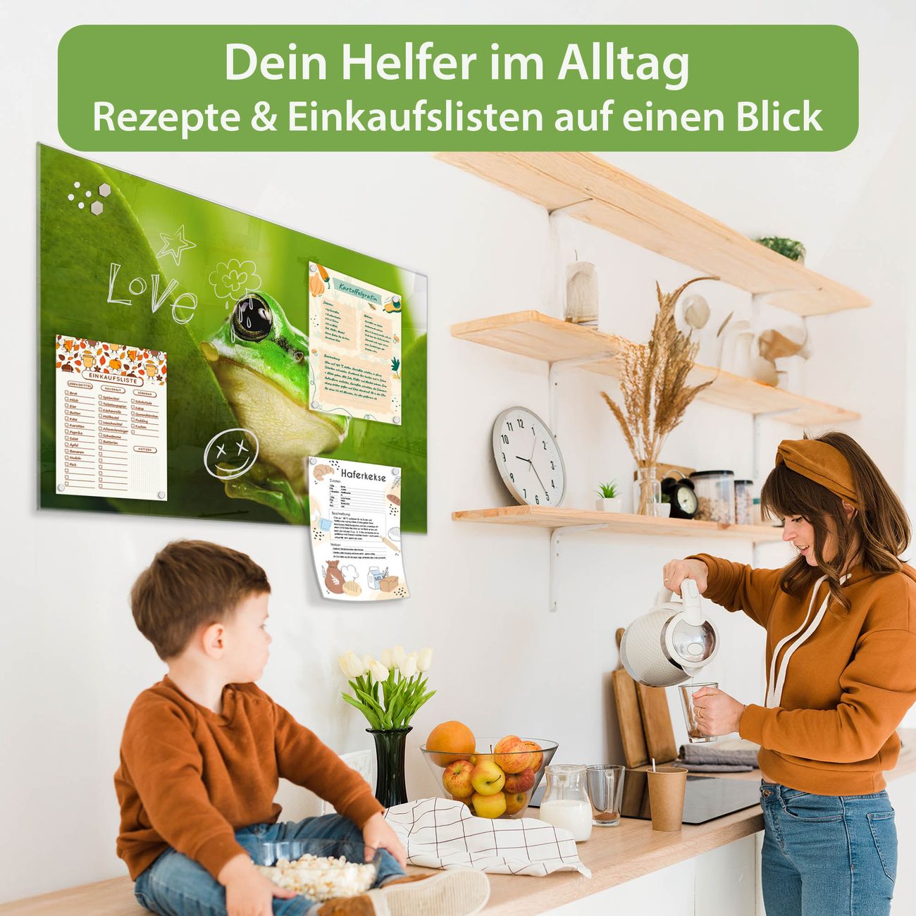 Ein Stück Design, das Ihren Alltag organisiert. Schreiben, heften, inspirieren - alles an einem Ort. Qualität, die man spürt. Montage leicht gemacht. Handwerk mit Herz - veredelt in Sachsen. Einzigartiges Design mit Motiv Motiv Frosch Beschreibbare Glasoberfläche, leicht zu reinigen Starke Magnetkraft durch Stahlrückwand Inklusive 4 Neodym-Magneten Flexible Montageoptionen Handveredelt in Sachsen - Qualität, die bleibt
