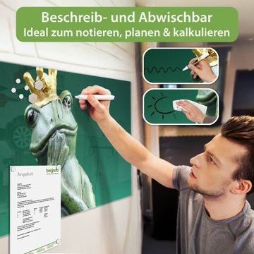 Die banjado Glas Magnettafel mit dem Motiv Motiv Froschkönig verbindet Funktionalität mit Stil. Sie ersetzt das Zettelchaos durch klare Strukturen und bringt dabei eine warme, natürliche Atmosphäre in Ihr Zuhause. Ob im Büro, in der Küche oder im Eingangsbereich - dieses Design-Board zieht Blicke an und sorgt für Ordnung mit Charakter.