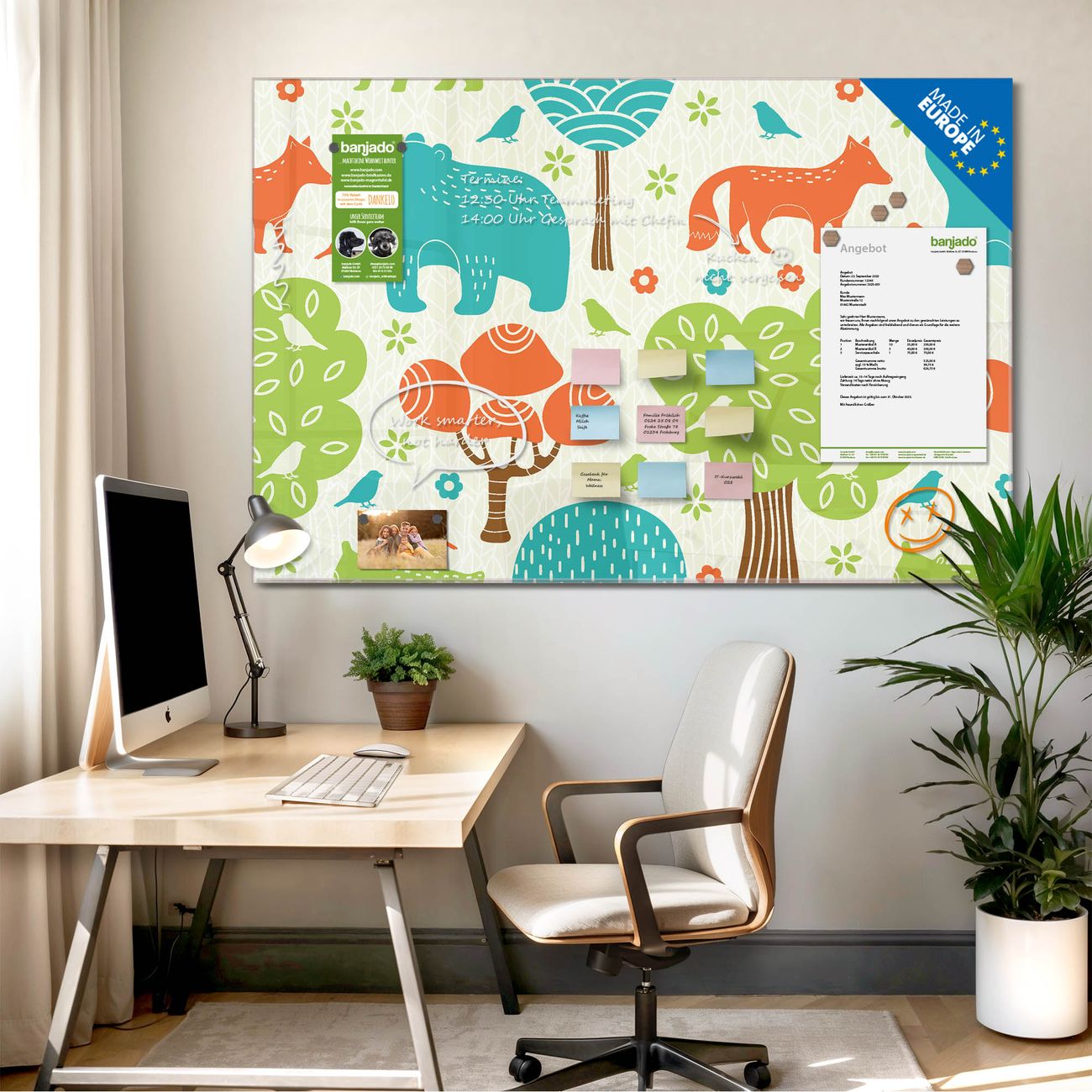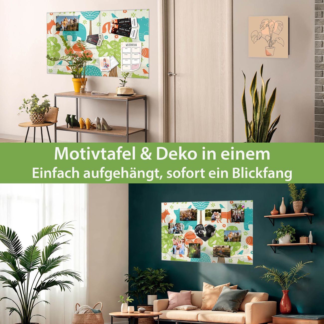 Die banjado Glas Magnettafel mit dem Motiv Motiv Fuchs Bär Wald verbindet Funktionalität mit Stil. Sie ersetzt das Zettelchaos durch klare Strukturen und bringt dabei eine warme, natürliche Atmosphäre in Ihr Zuhause. Ob im Büro, in der Küche oder im Eingangsbereich - dieses Design-Board zieht Blicke an und sorgt für Ordnung mit Charakter.