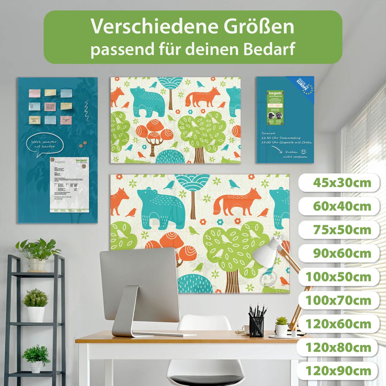 Ein Stück Design, das Ihren Alltag organisiert. Schreiben, heften, inspirieren - alles an einem Ort. Qualität, die man spürt. Montage leicht gemacht. Handwerk mit Herz - veredelt in Sachsen. Einzigartiges Design mit Motiv Motiv Fuchs Bär Wald Beschreibbare Glasoberfläche, leicht zu reinigen Starke Magnetkraft durch Stahlrückwand Inklusive 4 Neodym-Magneten Flexible Montageoptionen Handveredelt in Sachsen - Qualität, die bleibt