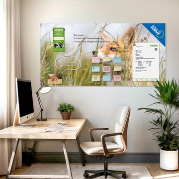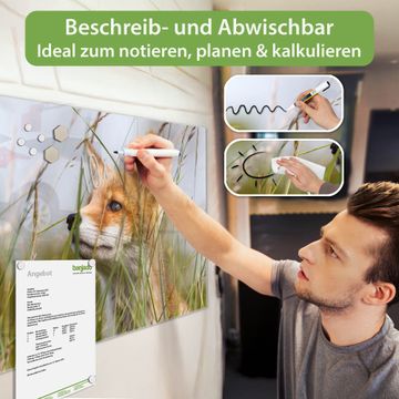 Die banjado Glas Magnettafel mit dem Motiv Motiv Fuchs verbindet Funktionalität mit Stil. Sie ersetzt das Zettelchaos durch klare Strukturen und bringt dabei eine warme, natürliche Atmosphäre in Ihr Zuhause. Ob im Büro, in der Küche oder im Eingangsbereich - dieses Design-Board zieht Blicke an und sorgt für Ordnung mit Charakter.
