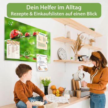 Auf der glatten Glasoberfläche lassen sich Termine, Rezepte oder Notizen ganz einfach mit Kreidestiften festhalten und rückstandslos entfernen. Starke Neodym-Magnete halten Ihre wichtigsten Erinnerungen sicher an Ort und Stelle. So entsteht Ihre ganz persönliche Ideenwand - jeden Tag neu.
