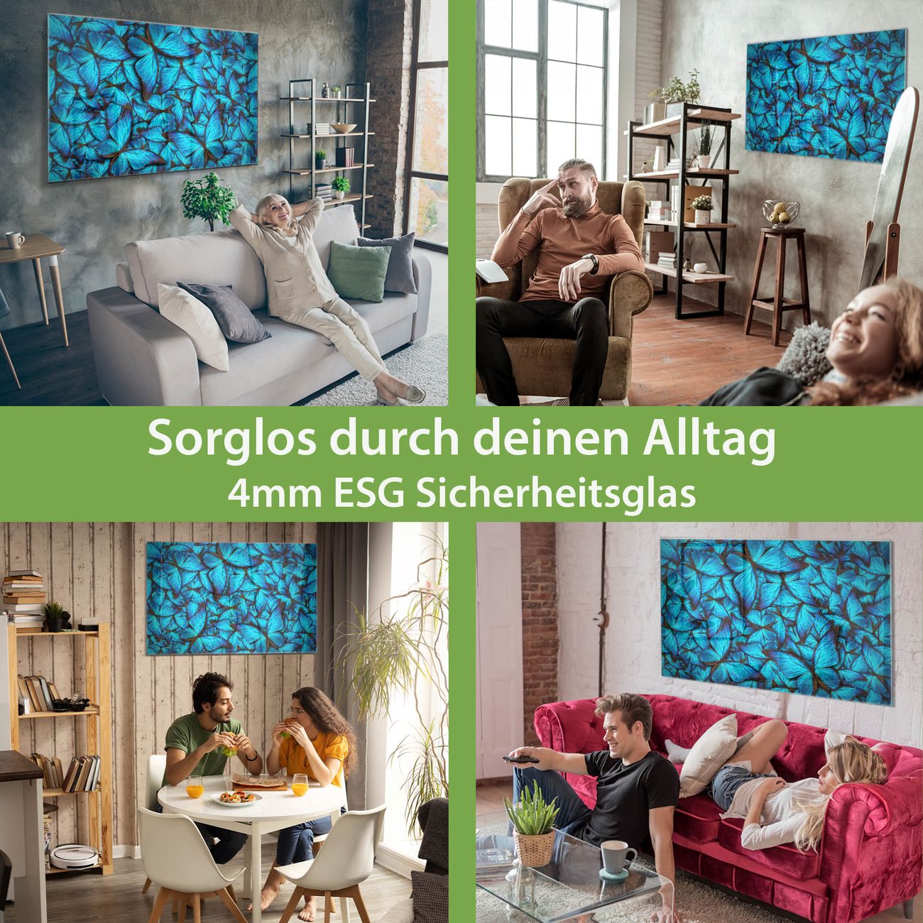 - Material: 4mm Sicherheitsglas mit Metallrückwand