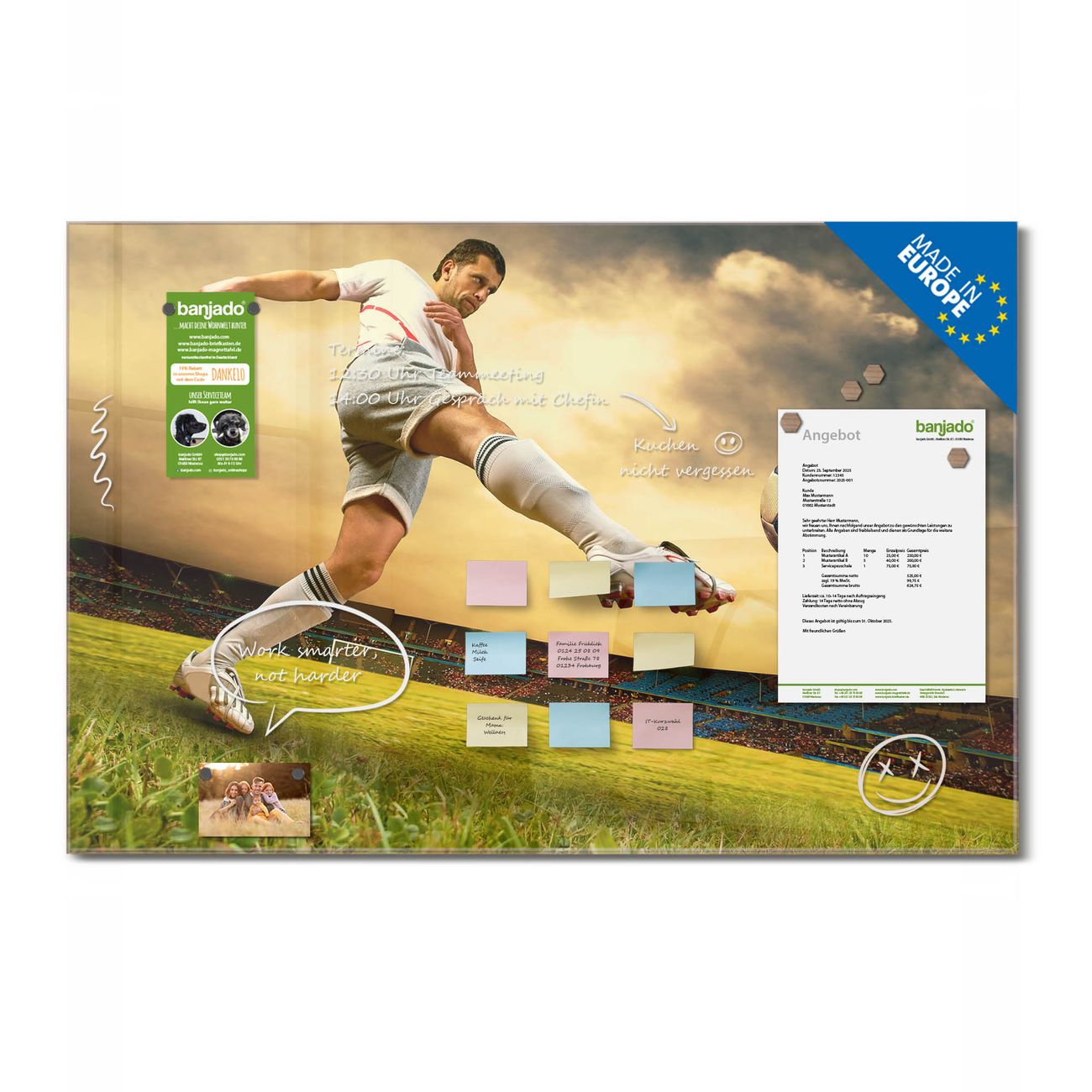 Die banjado Glas Magnettafel mit dem Motiv Motiv Football verbindet Funktionalität mit Stil. Sie ersetzt das Zettelchaos durch klare Strukturen und bringt dabei eine warme, natürliche Atmosphäre in Ihr Zuhause. Ob im Büro, in der Küche oder im Eingangsbereich - dieses Design-Board zieht Blicke an und sorgt für Ordnung mit Charakter.