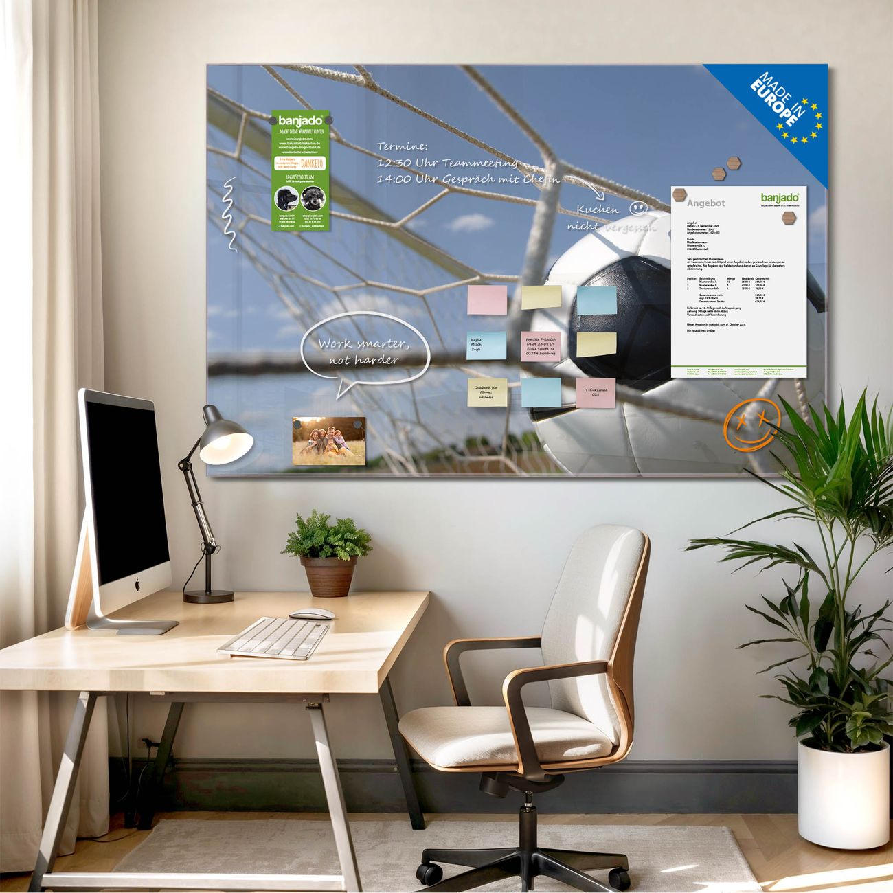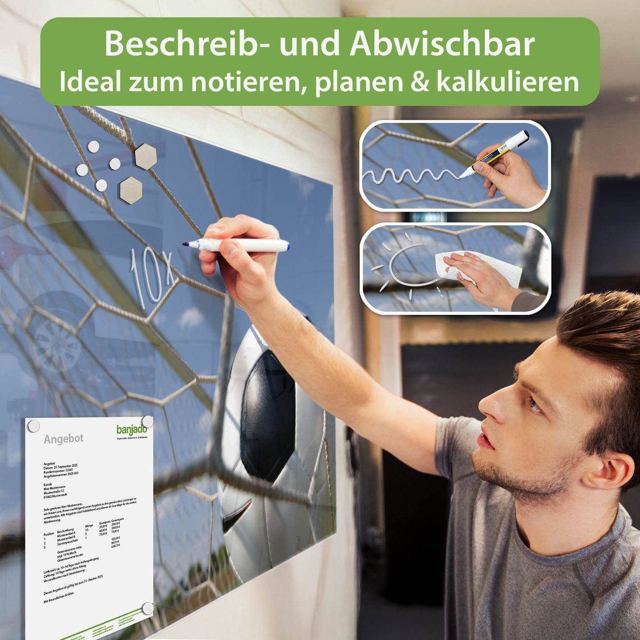 Die banjado Glas Magnettafel mit dem Motiv Motiv Fußball verbindet Funktionalität mit Stil. Sie ersetzt das Zettelchaos durch klare Strukturen und bringt dabei eine warme, natürliche Atmosphäre in Ihr Zuhause. Ob im Büro, in der Küche oder im Eingangsbereich - dieses Design-Board zieht Blicke an und sorgt für Ordnung mit Charakter.