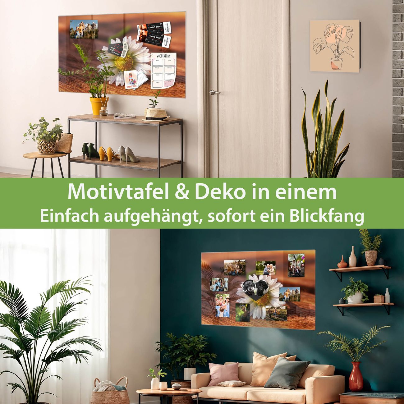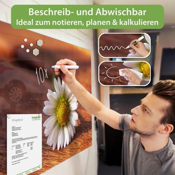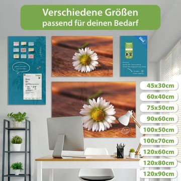 Die banjado Glas Magnettafel mit dem Motiv Motiv Gänseblümchen verbindet Funktionalität mit Stil. Sie ersetzt das Zettelchaos durch klare Strukturen und bringt dabei eine warme, natürliche Atmosphäre in Ihr Zuhause. Ob im Büro, in der Küche oder im Eingangsbereich - dieses Design-Board zieht Blicke an und sorgt für Ordnung mit Charakter.