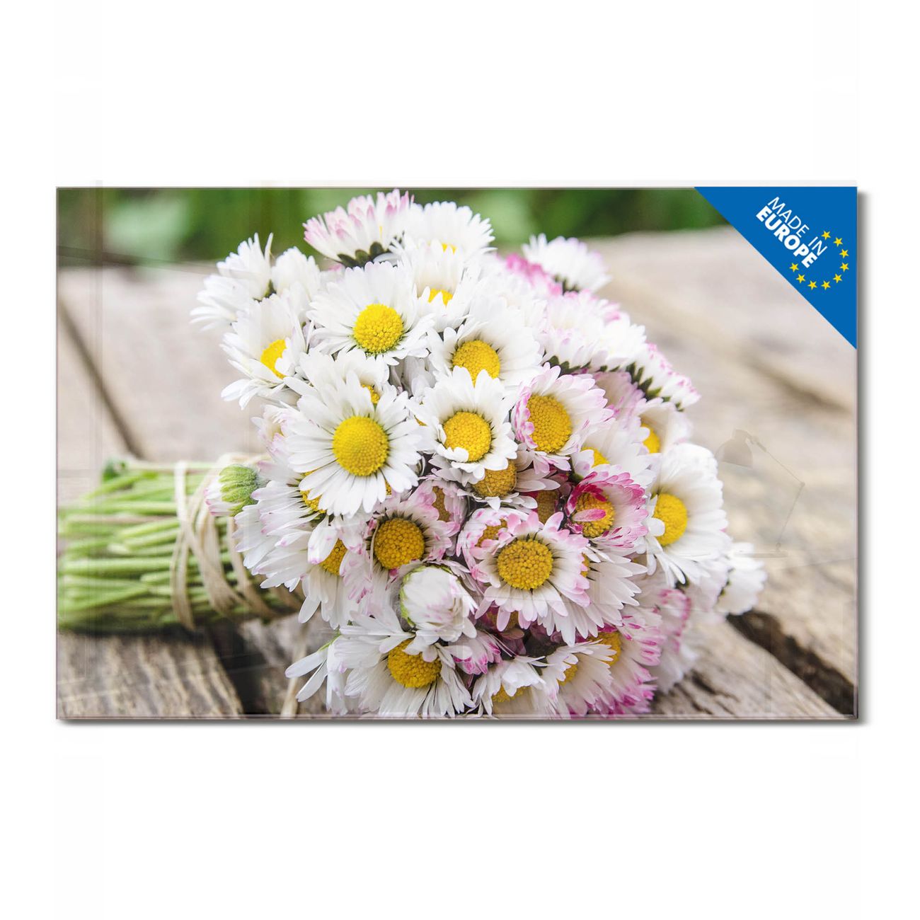 Glas Magnettafel im Querformat Motiv Strauß Gänseblümchen