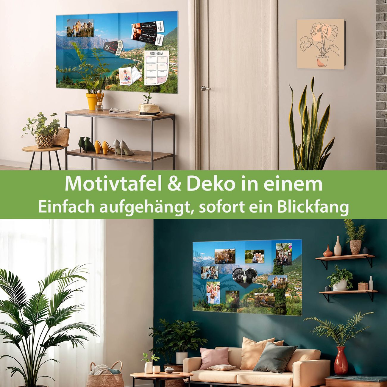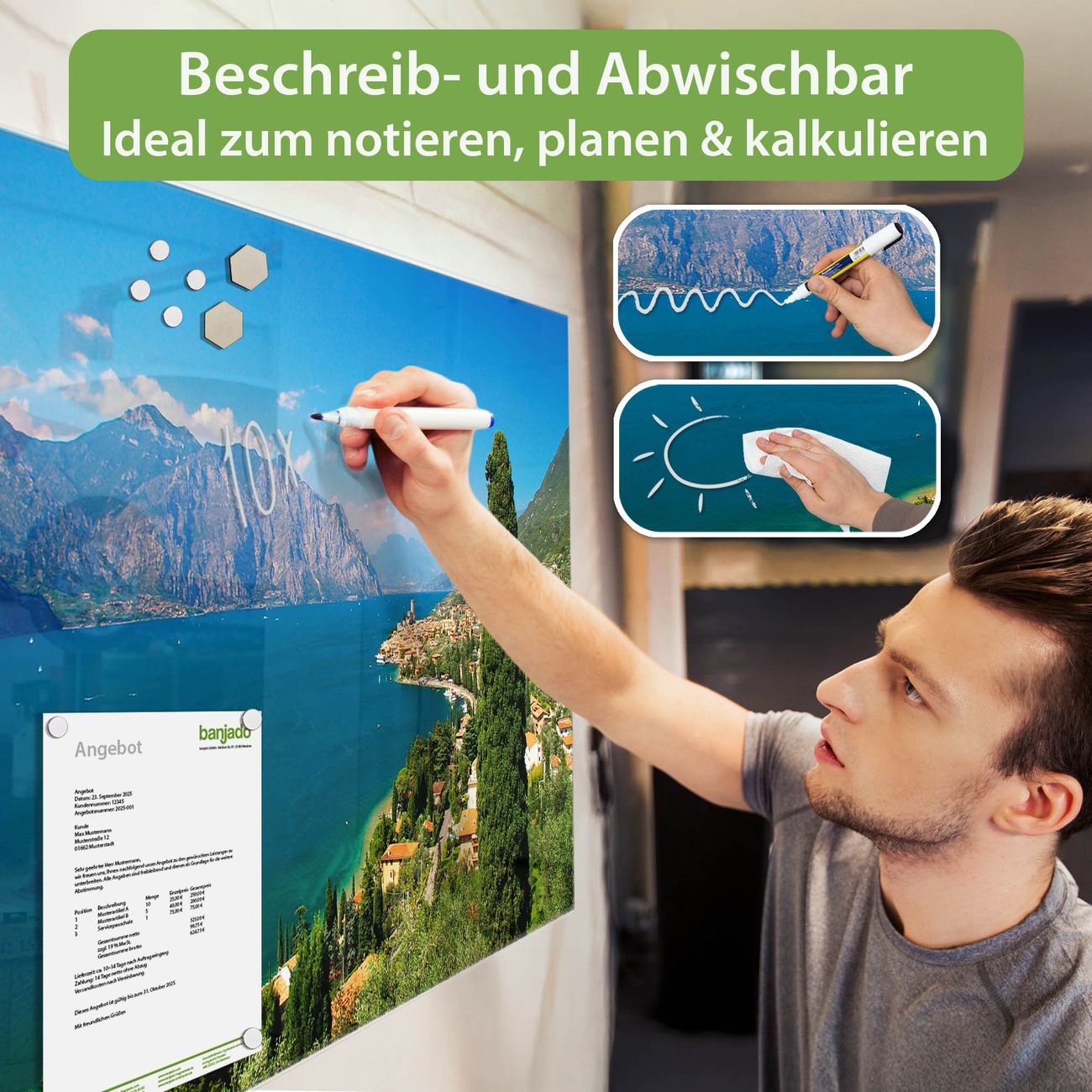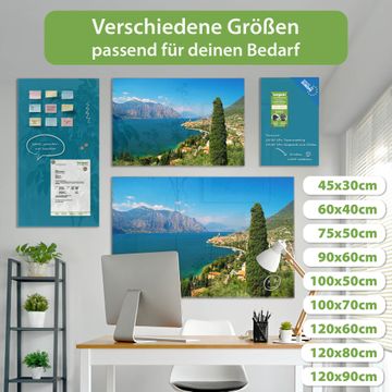 Die banjado Glas Magnettafel mit dem Motiv Motiv Gardasee verbindet Funktionalität mit Stil. Sie ersetzt das Zettelchaos durch klare Strukturen und bringt dabei eine warme, natürliche Atmosphäre in Ihr Zuhause. Ob im Büro, in der Küche oder im Eingangsbereich - dieses Design-Board zieht Blicke an und sorgt für Ordnung mit Charakter.