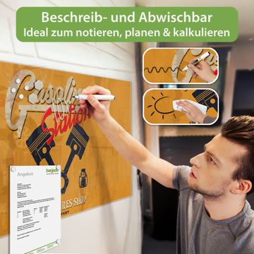 Die banjado Glas Magnettafel mit dem Motiv Motiv Gasoline Station verbindet Funktionalität mit Stil. Sie ersetzt das Zettelchaos durch klare Strukturen und bringt dabei eine warme, natürliche Atmosphäre in Ihr Zuhause. Ob im Büro, in der Küche oder im Eingangsbereich - dieses Design-Board zieht Blicke an und sorgt für Ordnung mit Charakter.