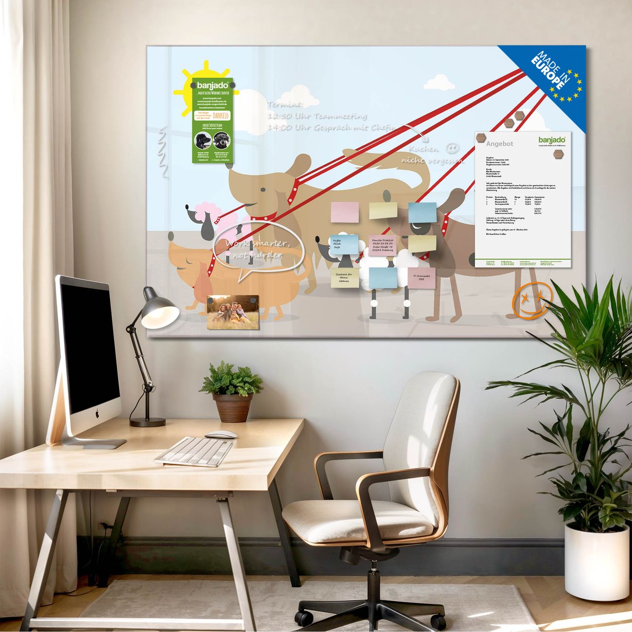 Die banjado Glas Magnettafel mit dem Motiv Motiv Gassi Gehen verbindet Funktionalität mit Stil. Sie ersetzt das Zettelchaos durch klare Strukturen und bringt dabei eine warme, natürliche Atmosphäre in Ihr Zuhause. Ob im Büro, in der Küche oder im Eingangsbereich - dieses Design-Board zieht Blicke an und sorgt für Ordnung mit Charakter.