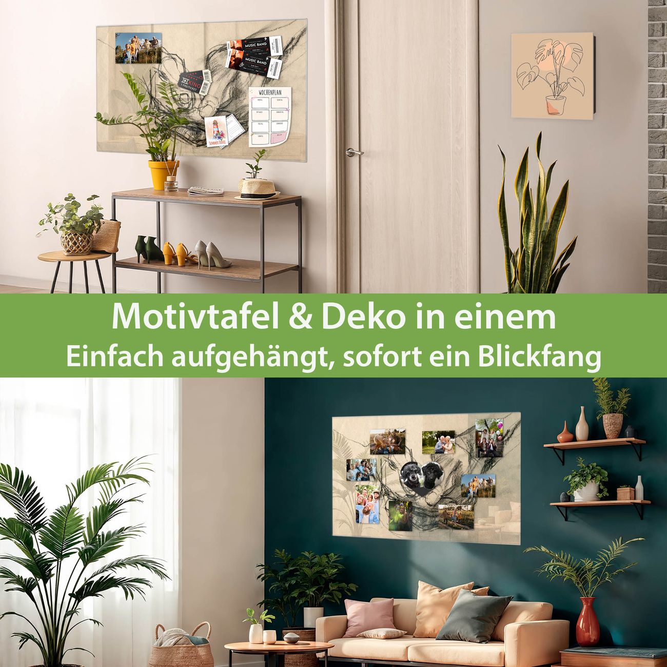 Dank der flachen Bauweise wirkt die Magnetwand fast schwebend an der Wand. Sie können sie mit Montagekleber elegant befestigen oder mit einem passenden Set klassisch verschrauben - beides sorgt für sicheren Halt und eine dezente Optik.